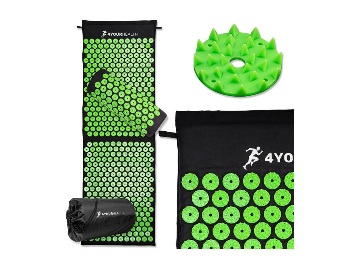 Měkká matrace a ergonomický půlválec jsou vyrobeny z přírodní bavlny. Na jejich povrchu jsou rozmístěny kruhové rozety s více masážními hroty. Díky hrotům na rozetách se docílí tlaku na několik akupresurních bodů současně. Masáž na masážní podložce je bezbolestná, podporuje krevní oběh a také zpevňuje pokožku a podkožní tkáň. Uvolňuje bolesti a napětí svalů a kloubů, přináší úlevu od bolesti při migréně a stimuluje nervový systém. Odstraňuje stres, depresi, podporuje lepší spánek a zlepšuje náladu.