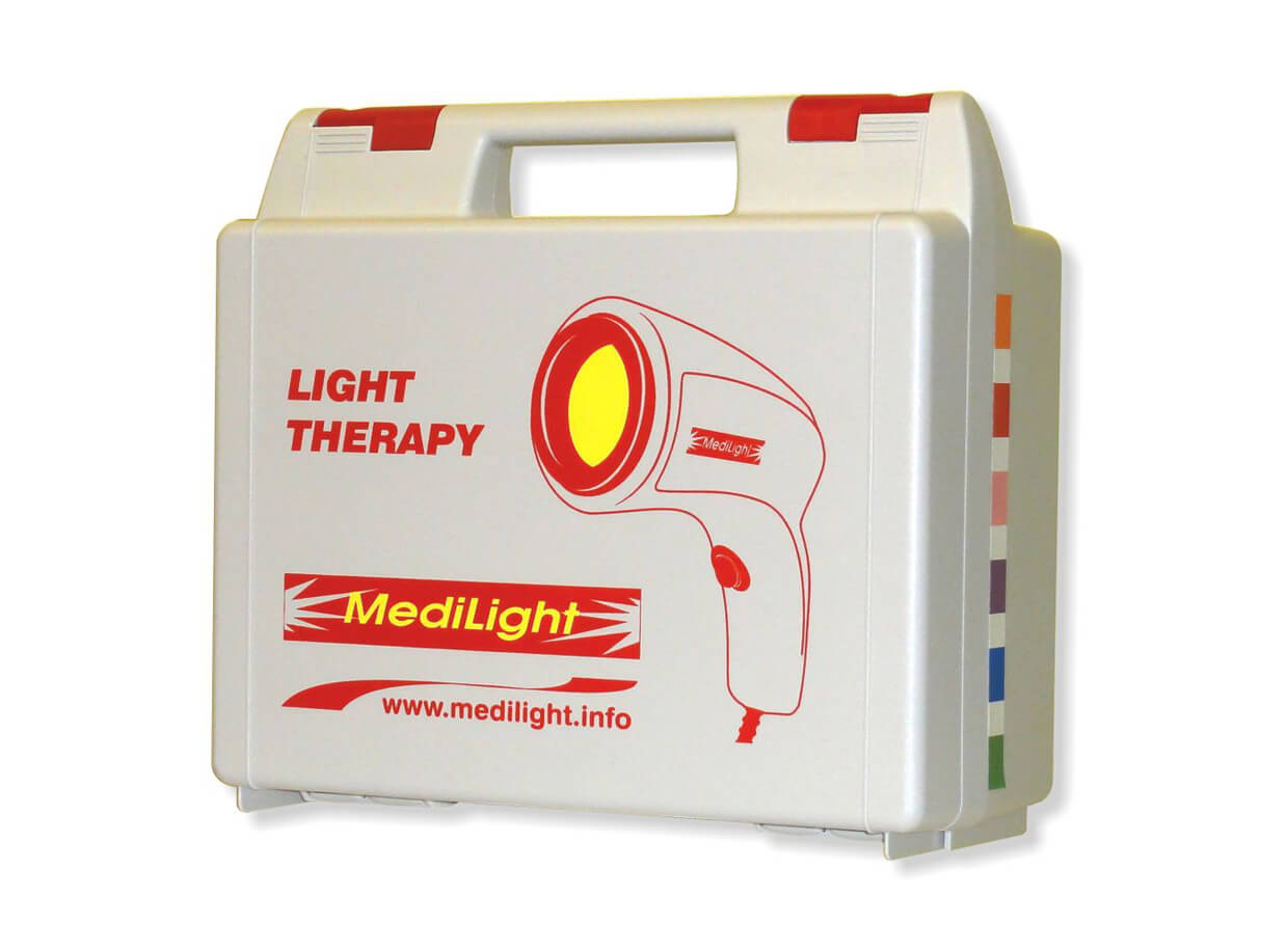 Biolampa MediLight s napájecím zdrojem v praktickém pevném plastovém kufříku.