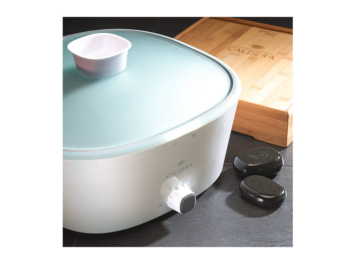 Elegantní designový ohřívač lávových kamenů Caldera Professional, který se hodí do každého moderního masážního a kosmetického salonu.