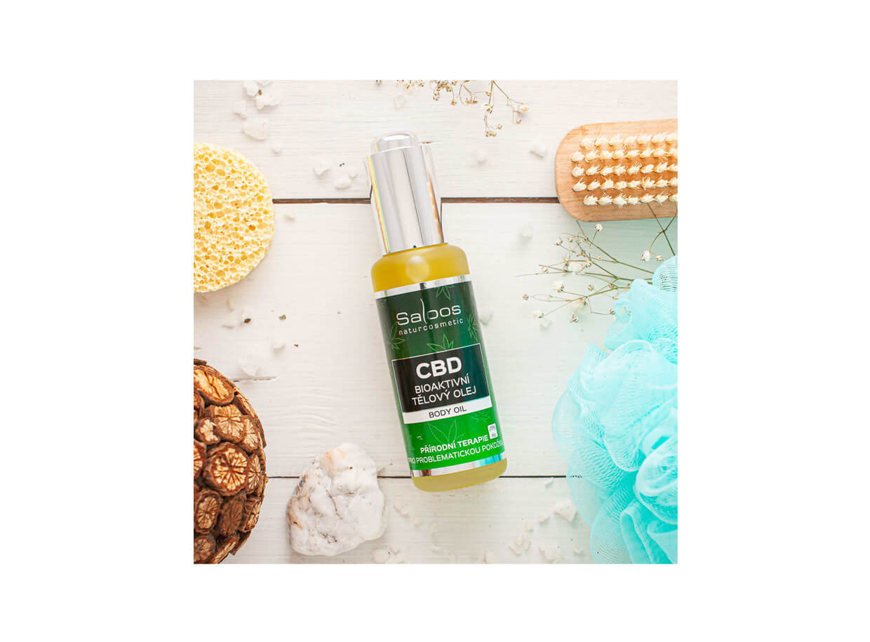 CBD bioaktivní tělový olej SALOOS poskytuje důkladnou péči o problematickou kůži.