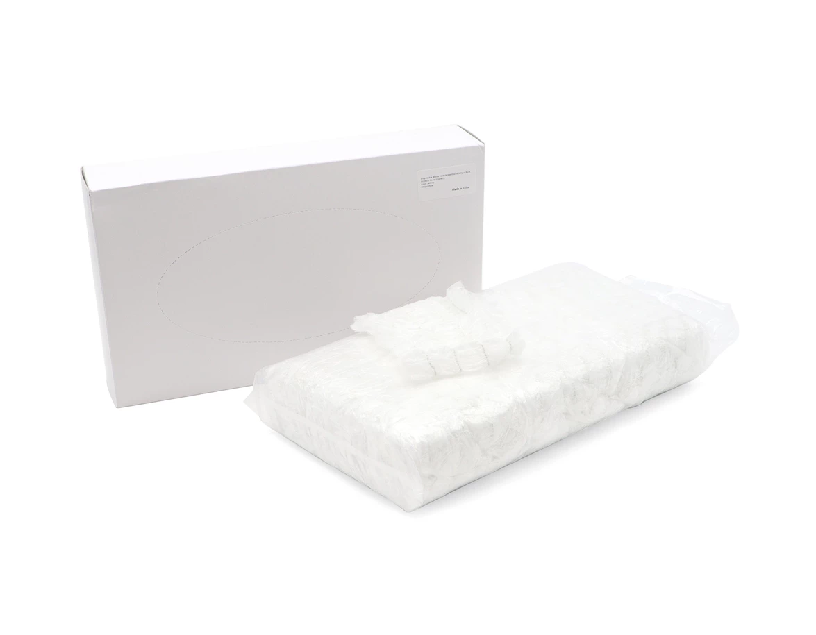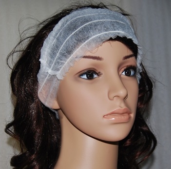 Bílá čelenka zhotovena z netkané textilie, určená k jednorázovému použití.