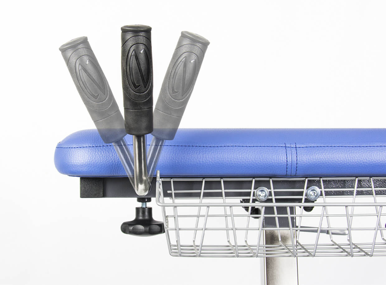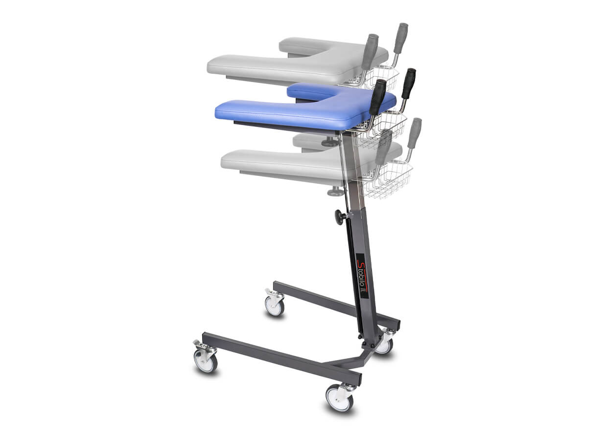 Centrální nosník je vyroben z nerezu, díky čemuž je konstrukce velmi pevná i při vysunutí opěrné desky do maximální výšky. Chodítko je proto vhodné i pro velmi vysoké osoby (220 cm). 40 cm široké vykrojení opory předloktí umožňuje použití chodítka i pro osoby s mohutnějším hrudníkem.