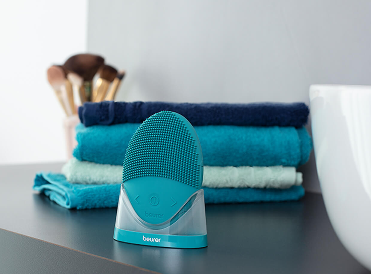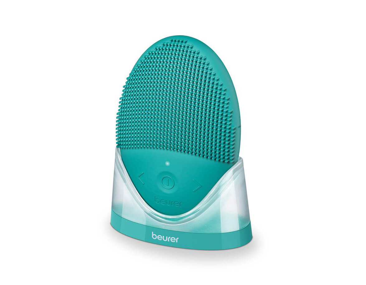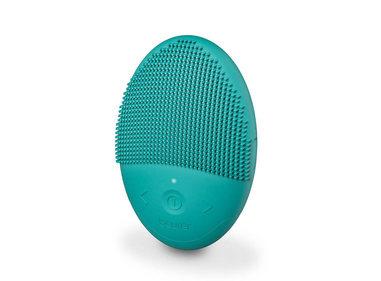 Kartáček BEURER FC52 Laguna má silikonový povrch, který je jemný k pleti a zároveň se snadno udržuje v čistotě. Zadní vroubkovaná strana přístroje je určena pro jemnou masáž pokožky a svalů obličeje.