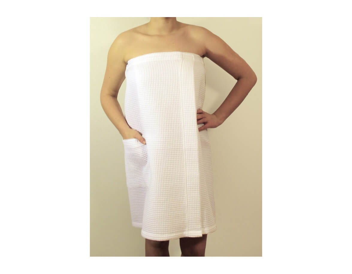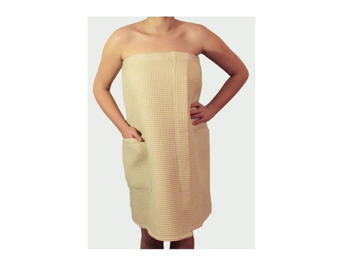 Kilt do sauny pro dámy je šitý ve volném střihu z látky s vaflovým vzorem. Vzdušný materiál kiltu vám při nošení zaručí pocit lehkosti, přirozenosti, pohodlnosti a současně vytvoří elegantní vzhled. Pokrývá větší část těla a využijí jej rovněž pánové vyšší postavy.