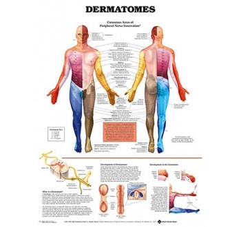 Dermatom je oblast kůže inervovaná jedním spinálním nervem. V neurologii se využívají na zjištění místa, v kterém je páteř poškozena. Plakát definuje dermatom a ilustruje oblasti kůže patřící k oblastem periferních nervů, dále zobrazuje inervaci, vývoj dermatomu a dermatomu končetin.