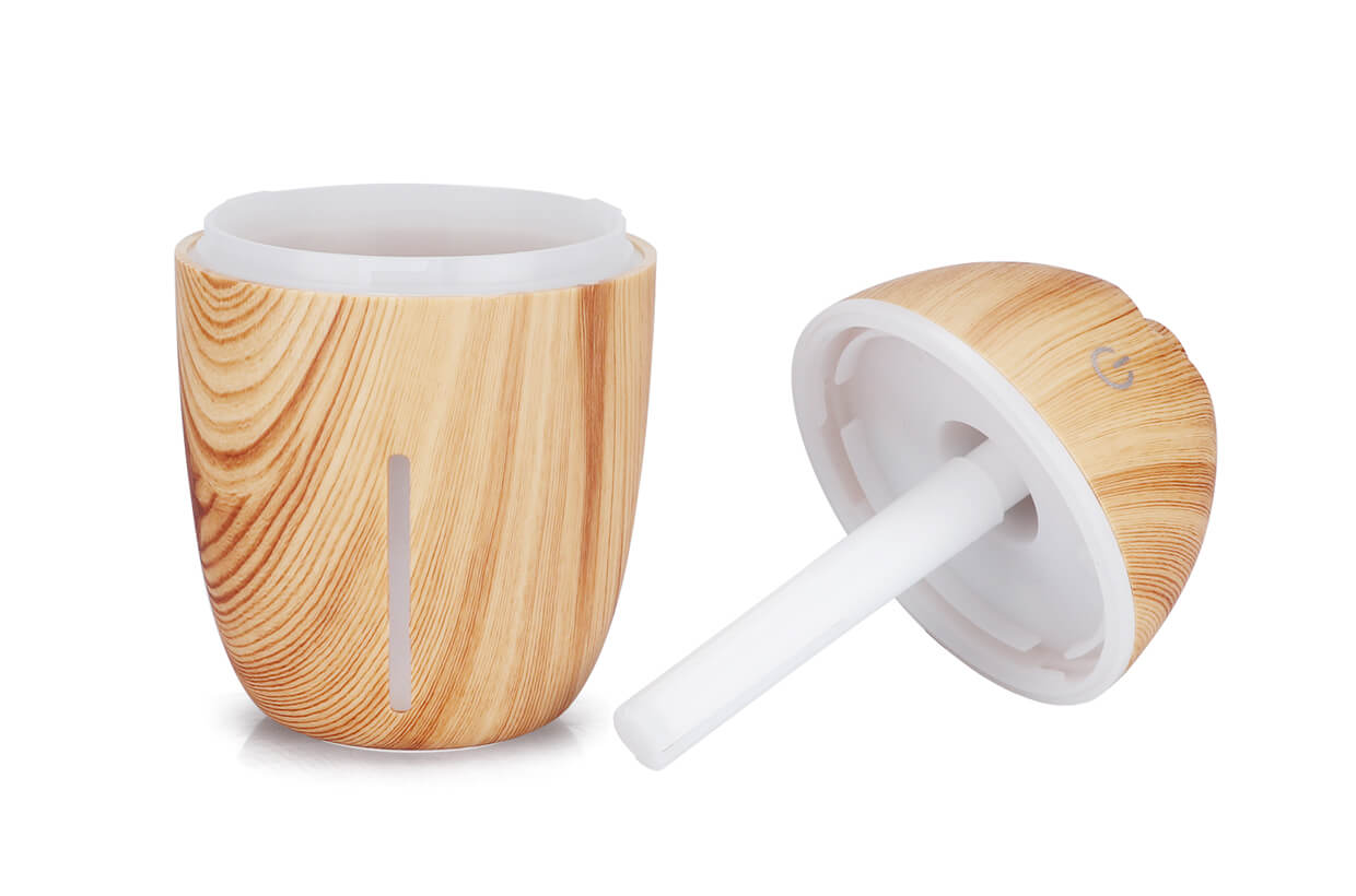 Použití: Zapojte USB kabel do přístroje. Nalijte do spodní nádobky destilovanou vodu. Můžete přidat pár kapek esenciálního oleje. Zavřete přístroj víkem a nechte pár minut absorpční váleček nasáknout vodou. Dotykem tlačítka přístroj zapněte.