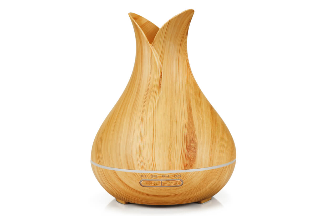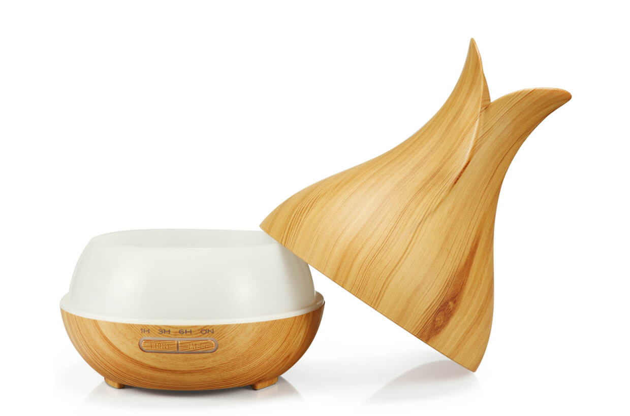 Ultrazvukový zvlhčovač vzduchu. Extra tichý (pod 35dB). Praktický a vkusný doplněk interiéru v barvě bledého dřeva.