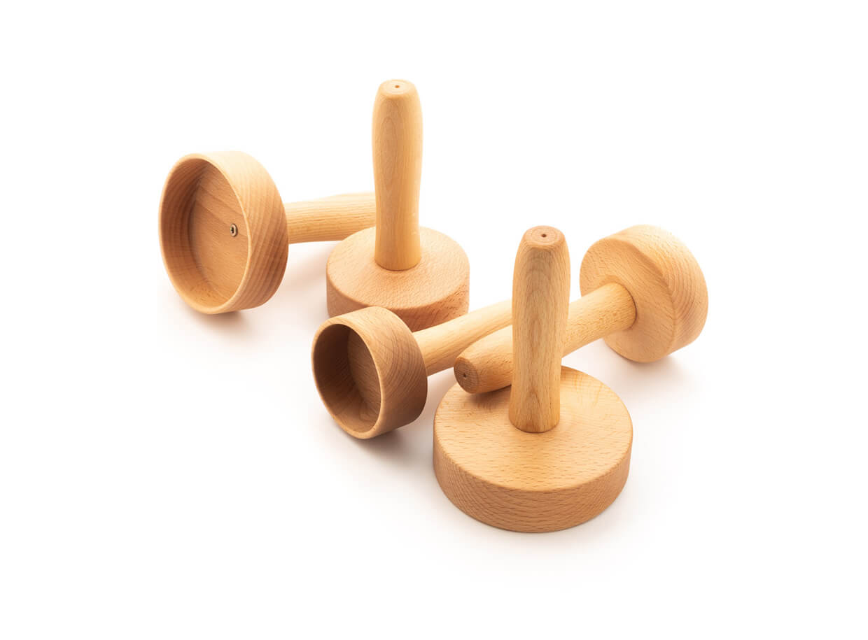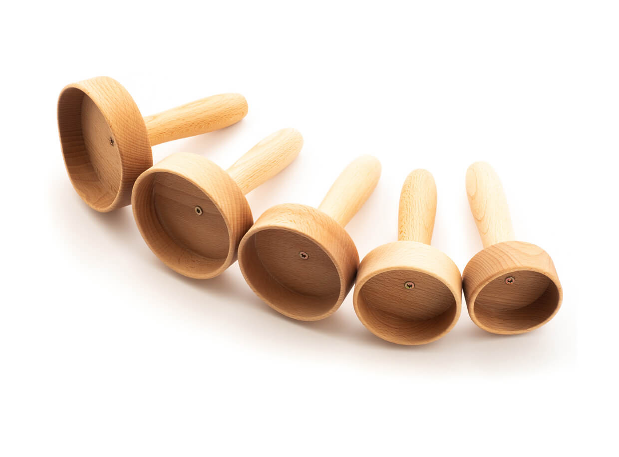 Dřevěné části nástrojů pro maderoterapii jsou ošetřeny impregnačním olejem na přírodní bázi, který dřevo chrání a prodlužuje jeho životnost. Nejsou lakovány.
