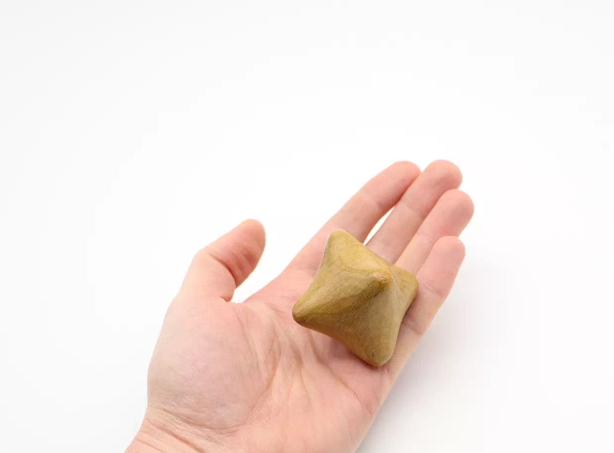 Masážní kostka ze santalového dřeva má 6 dohladka vyleštěných hrotů vhodných pro ošetření trigger points. Speciální tvar umožňuje masérovi zatlačit na více spoušťových bodů najednou a účinně uvolnit napětí ve svalech bez přetěžování palců nebo prstů terapeuta.