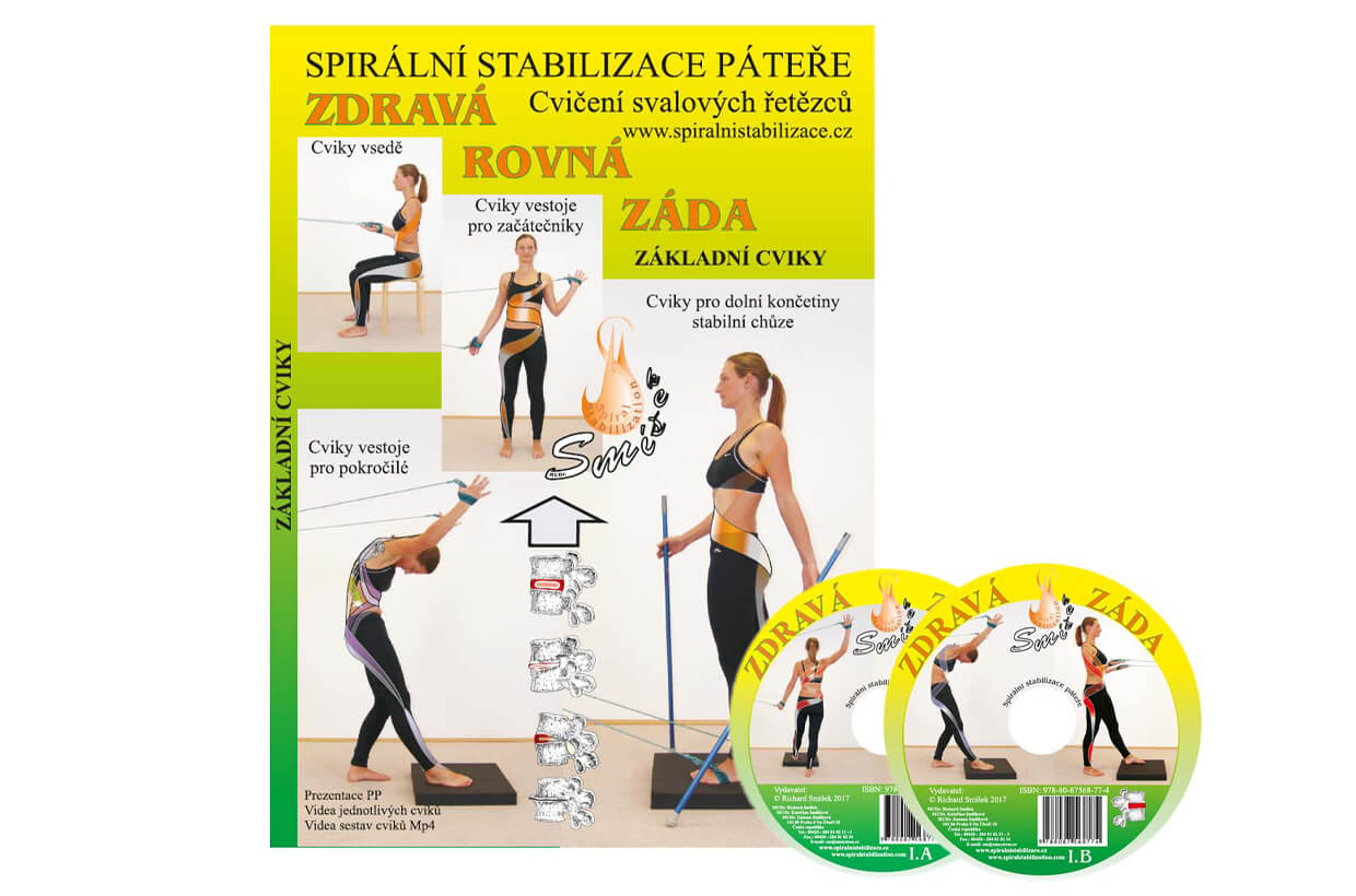 2 DVD s 11 základními cviky Spirální stabilizace páteře v různých obměnách. Každý cvik je znázorněn na fotce i ve videu.