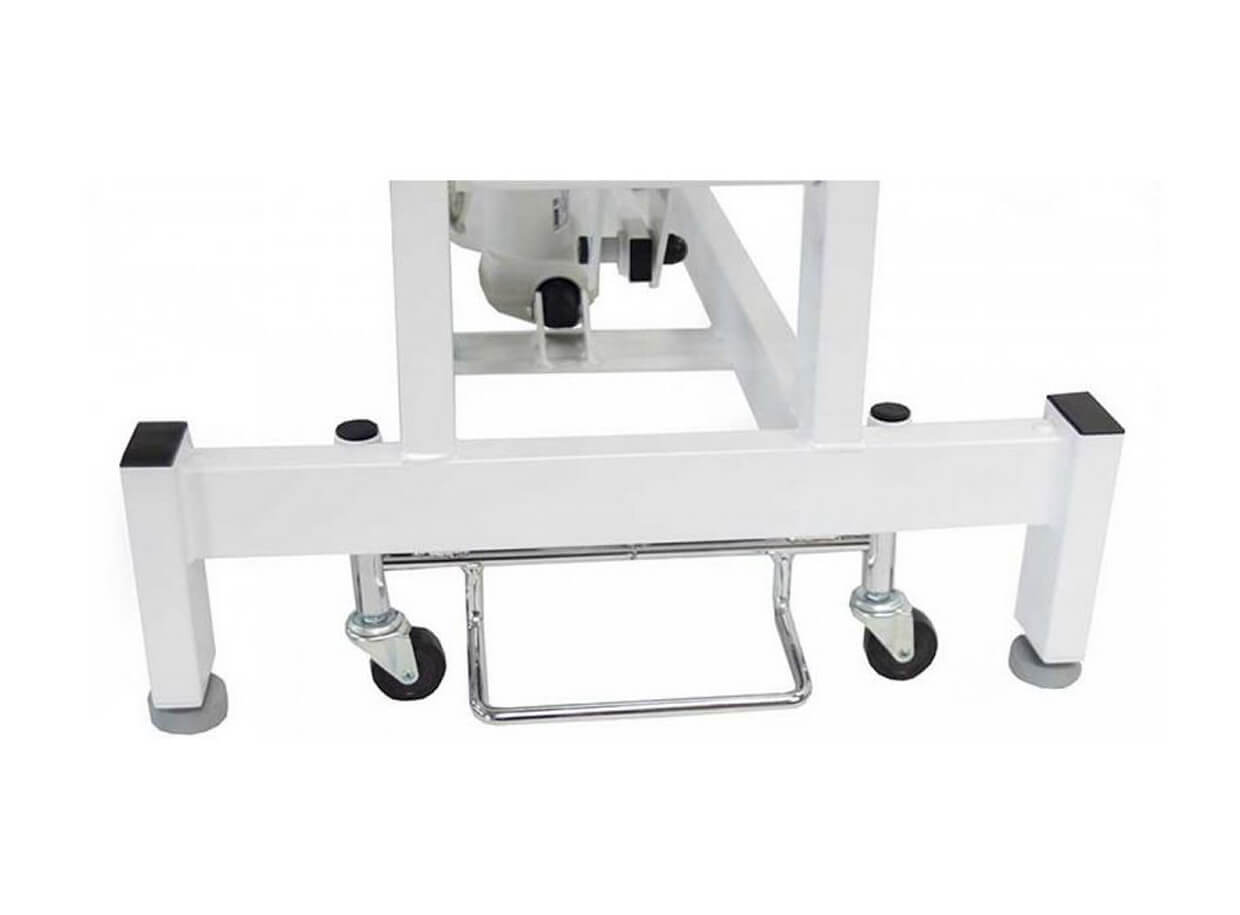 Elektrické lehátko EMERY E2 má stabilní konstrukci a je vybaveno sklopnými kolečky pro snadný přesun. Ve spodní části lehátka je držák na roli nebo ručník a hlavová část lehátka disponuje výřezem na obličej, který je krytý odnímatelným polštářem.