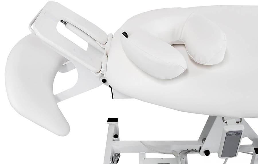 Pohodlně čalouněná hlavová opěrka s výřezem na obličej je spojena s opěrkou pro ruce a lokty. Při nastavování sklonu hlavové opěrky se tedy současně nastavuje i sklon opěrky rukou. Rozsah pohybu opěrek do 25° směrem dolů a 30° směrem nahoru se ovládá pneumatickou páčkou.