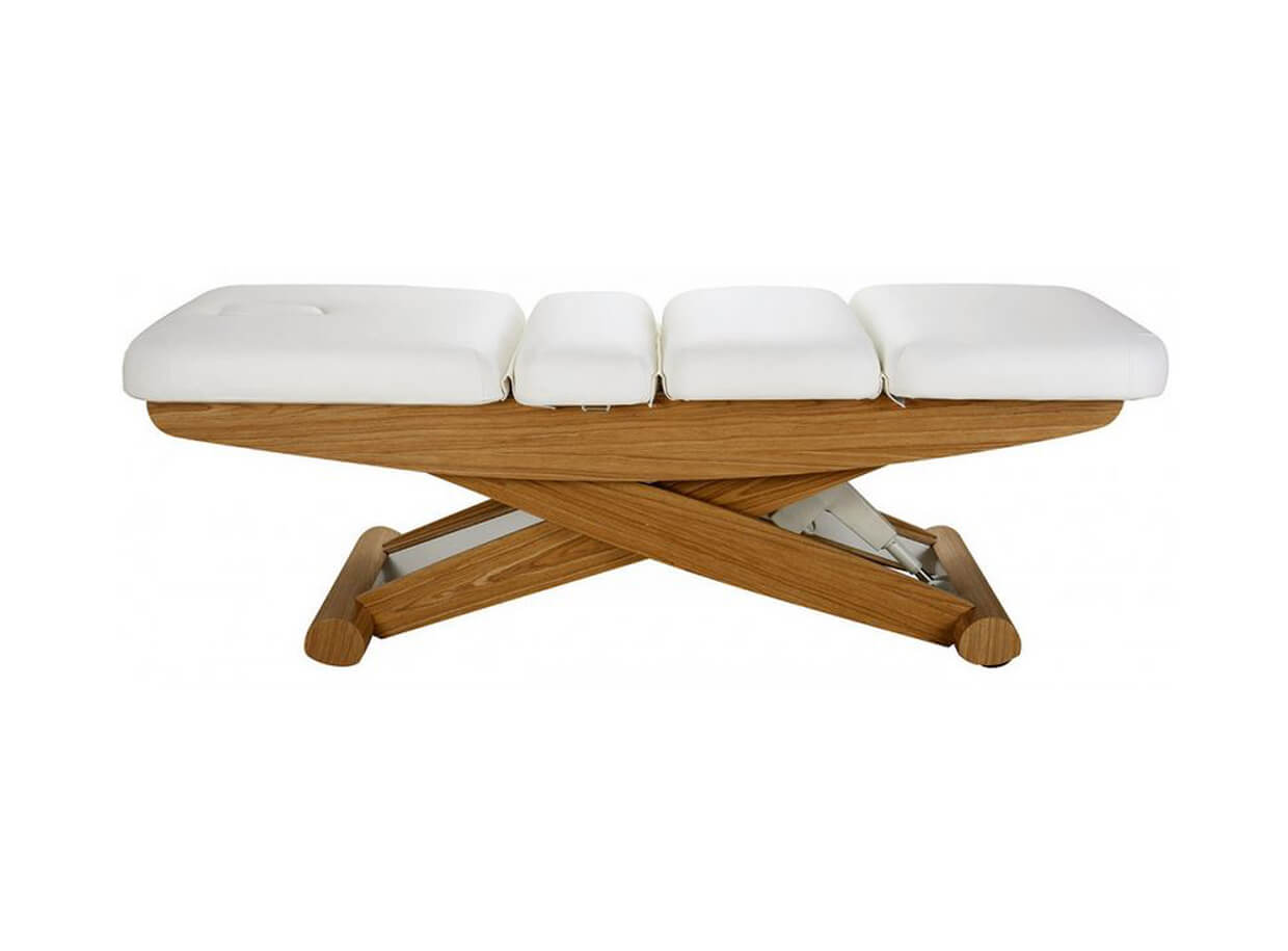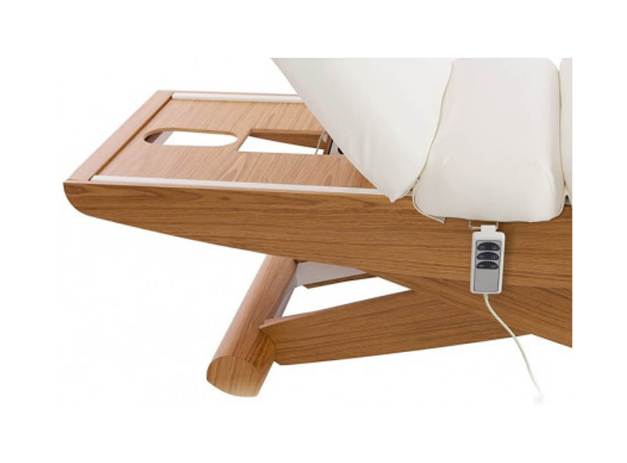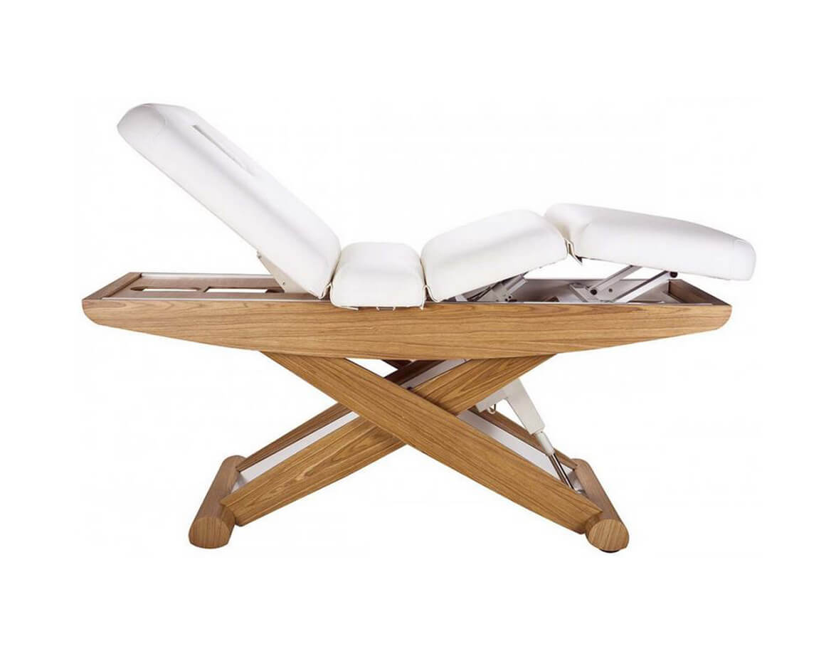 Elektrické lehátko LUNA SPLIT E3 SPA disponuje kovovou konstrukcí ukrytou ve dřevě. Příjemný přírodní vzhled v kombinaci s vysokým pohodlím řadí toto lehátko mezi luxusní součásti zařízení wellness. Konstrukce lehátka je nůžkového tvaru, takže se při měnění výšky lehátka neposouvá do prostoru tak, jako lehátka běžné konstrukce