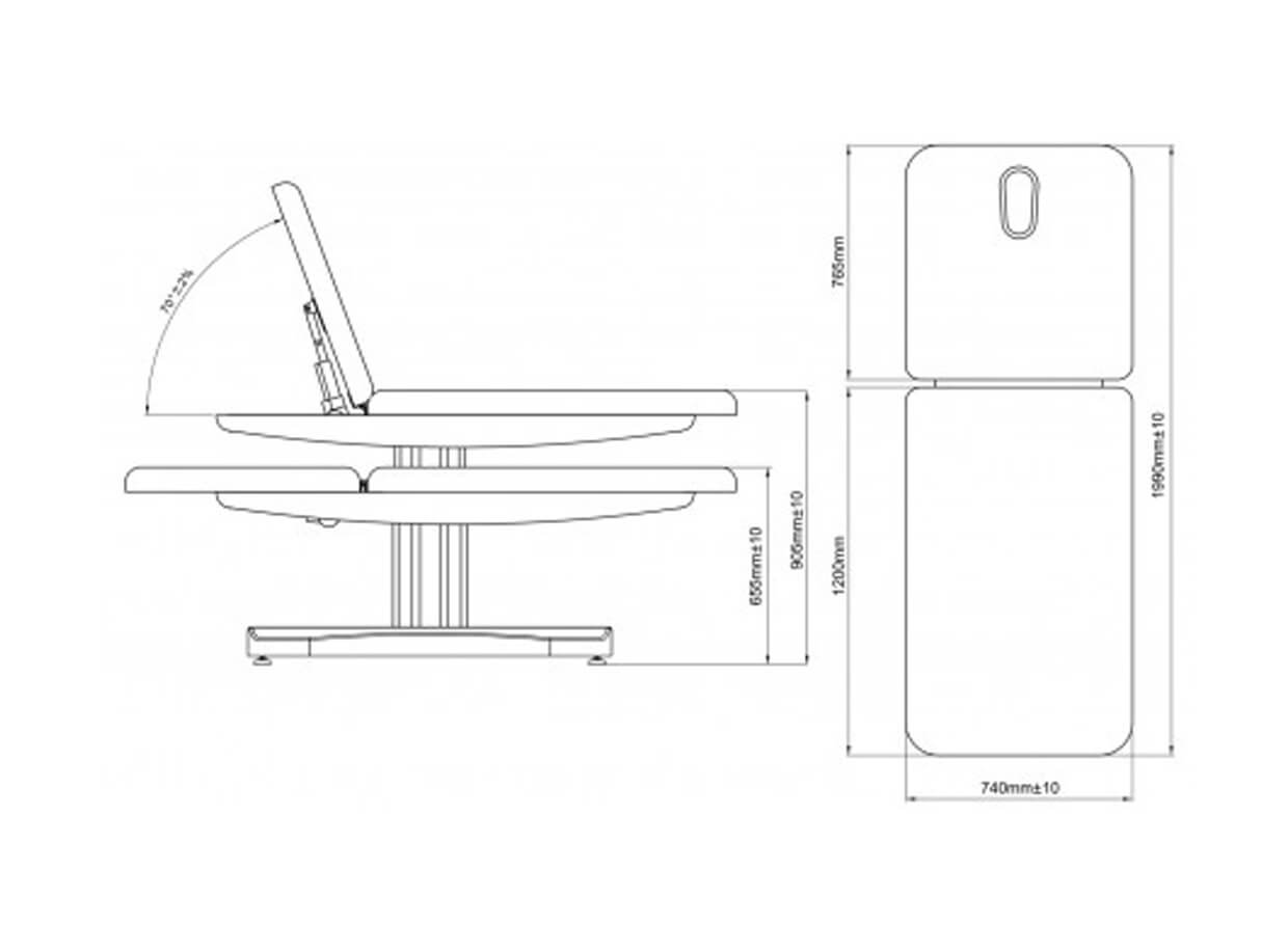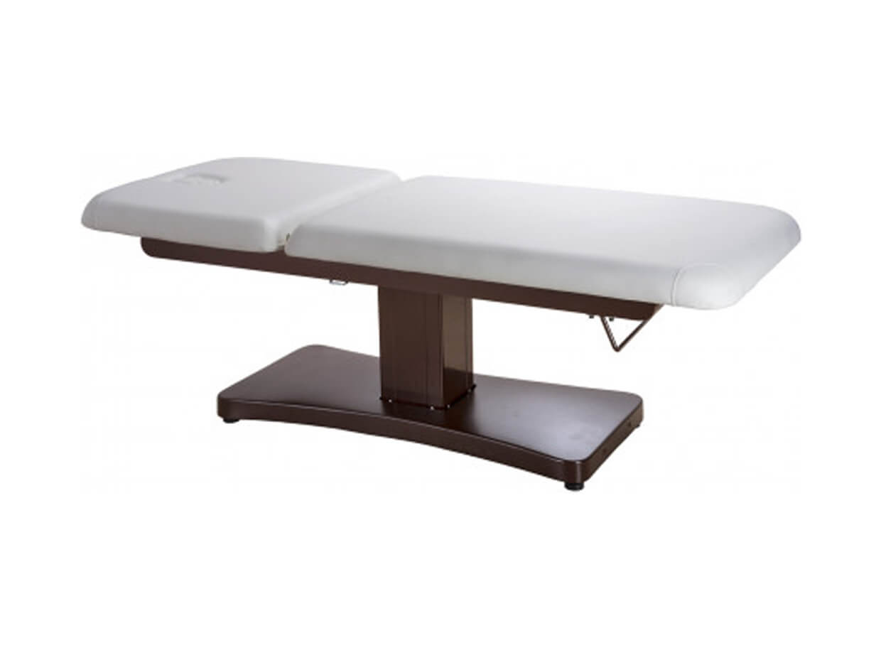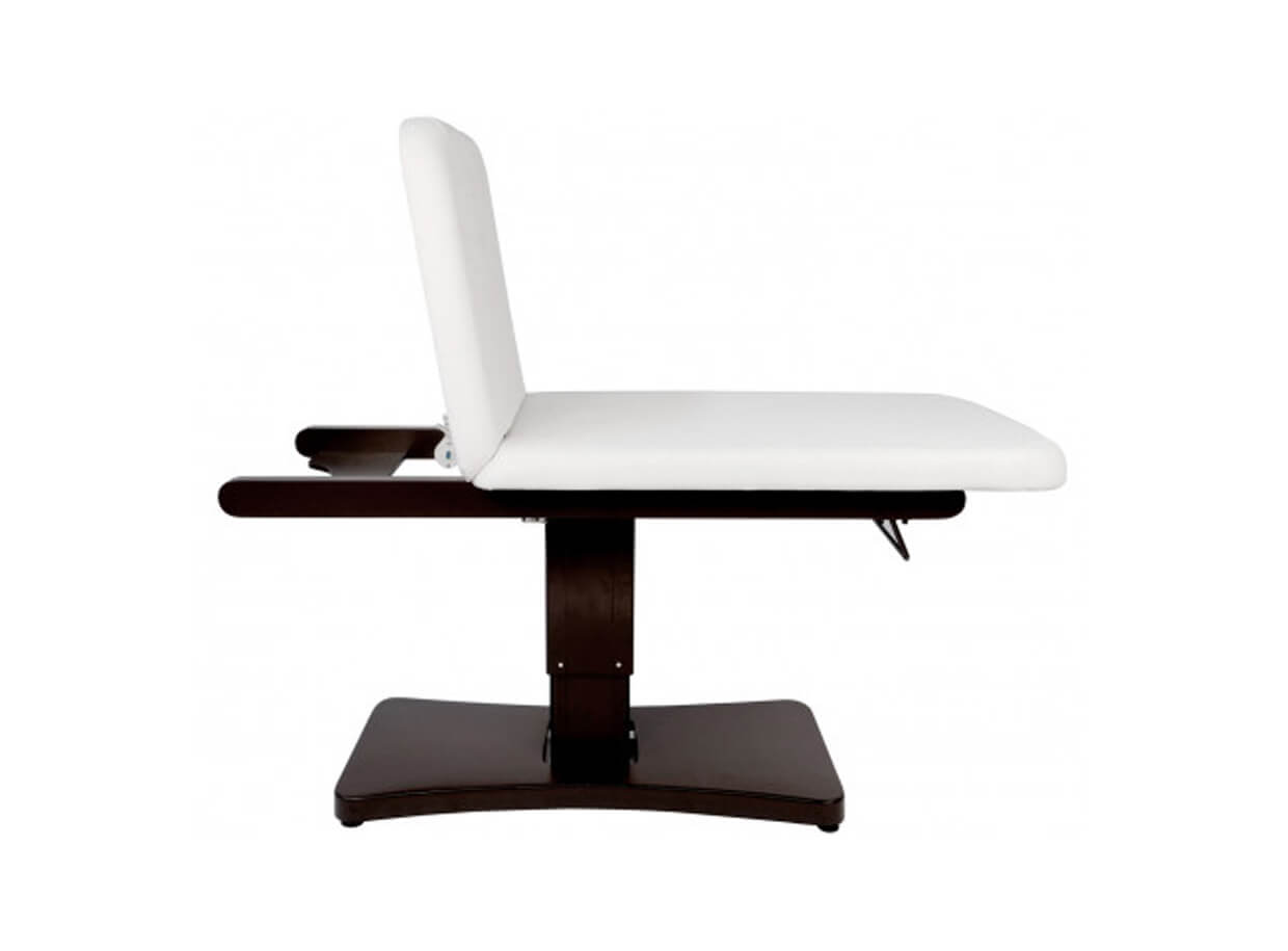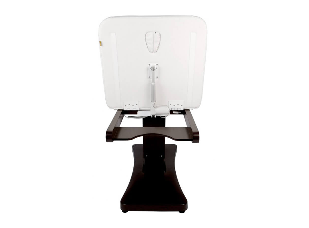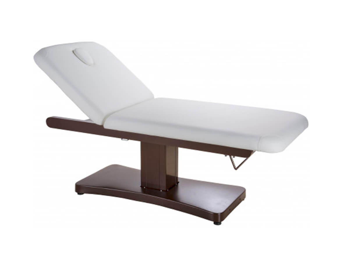 Dva motory ovládají nastavení výšky lehátka a sklon zádové opěrky prostřednictvím dálkového ručního ovladače. Zádová opěrka se dá napolohovat až do 70°. Skutečné pohodlí pro klienta představuje šířka lehátka až 74 cm.