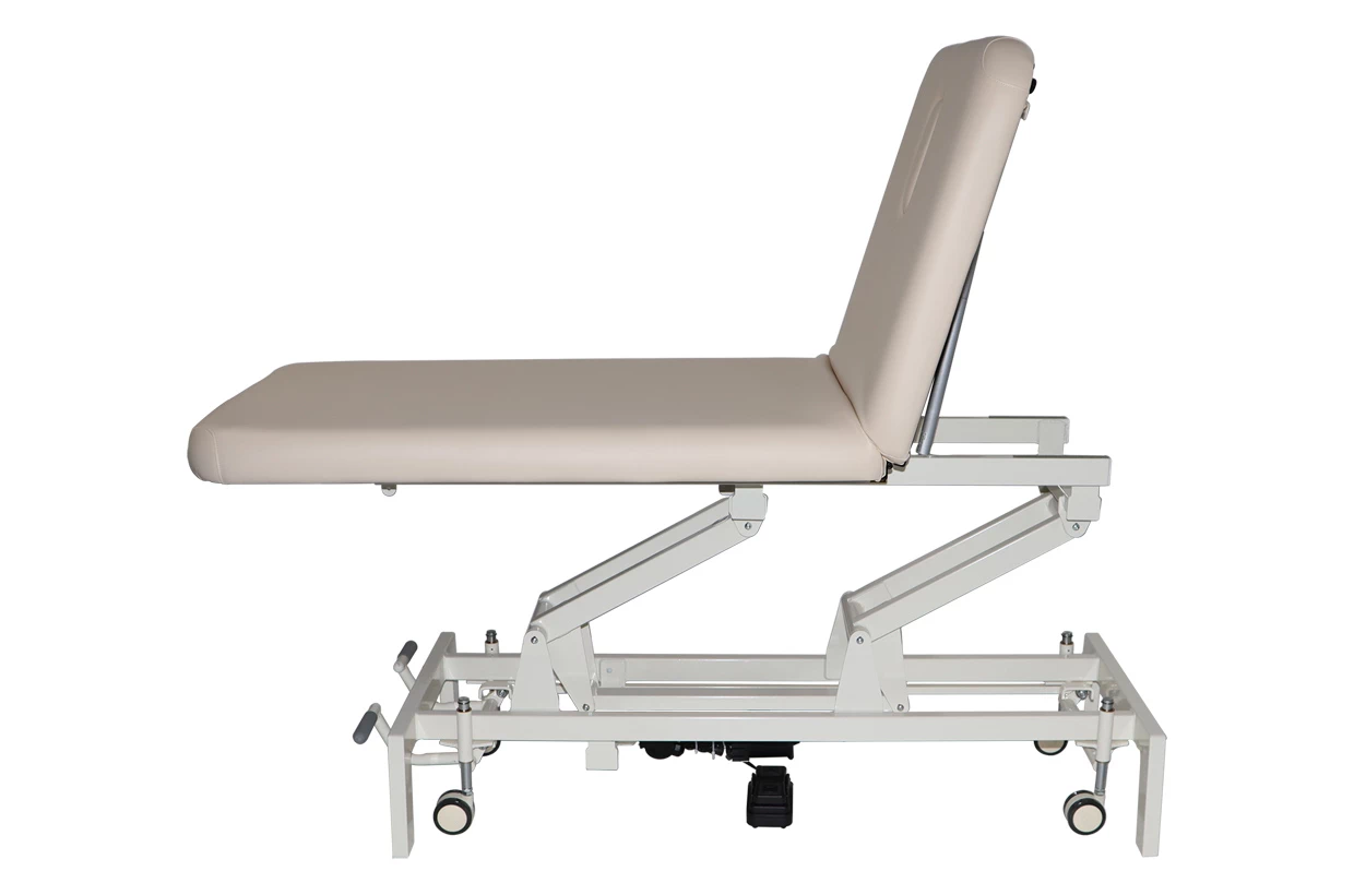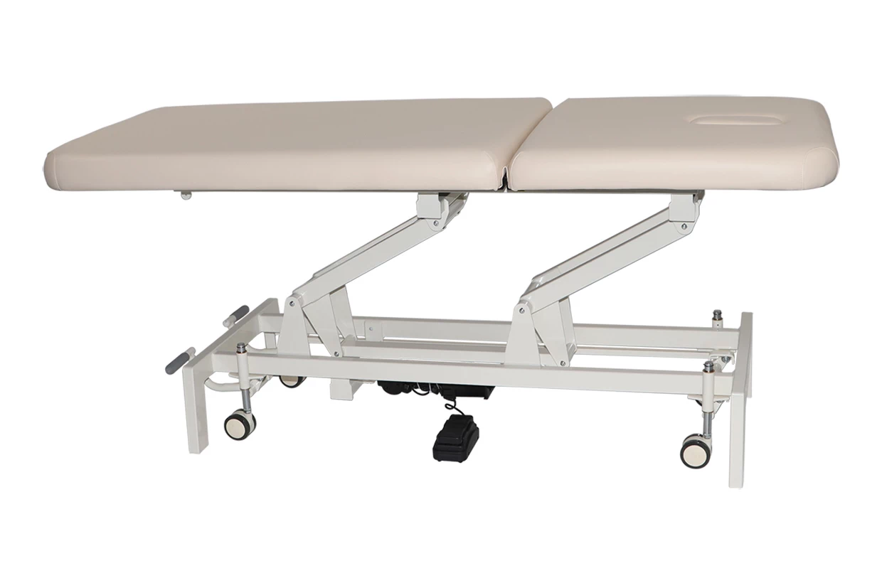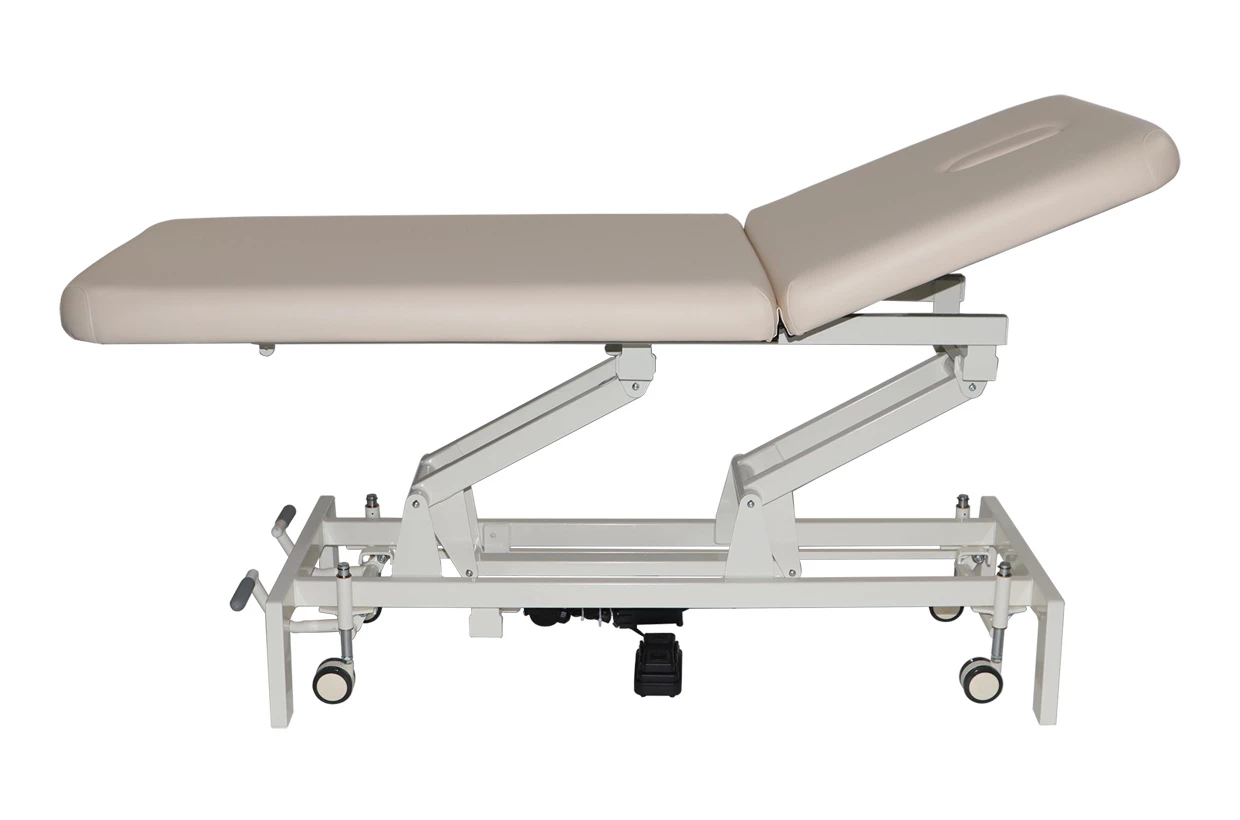 Toto moderní elektrické dvoudílné lehátko s nastavitelným sklonem opěrky hlavy je vhodné pro masáž, fyzioterapii, kosmetiku nebo jako vyšetřovací lůžko.