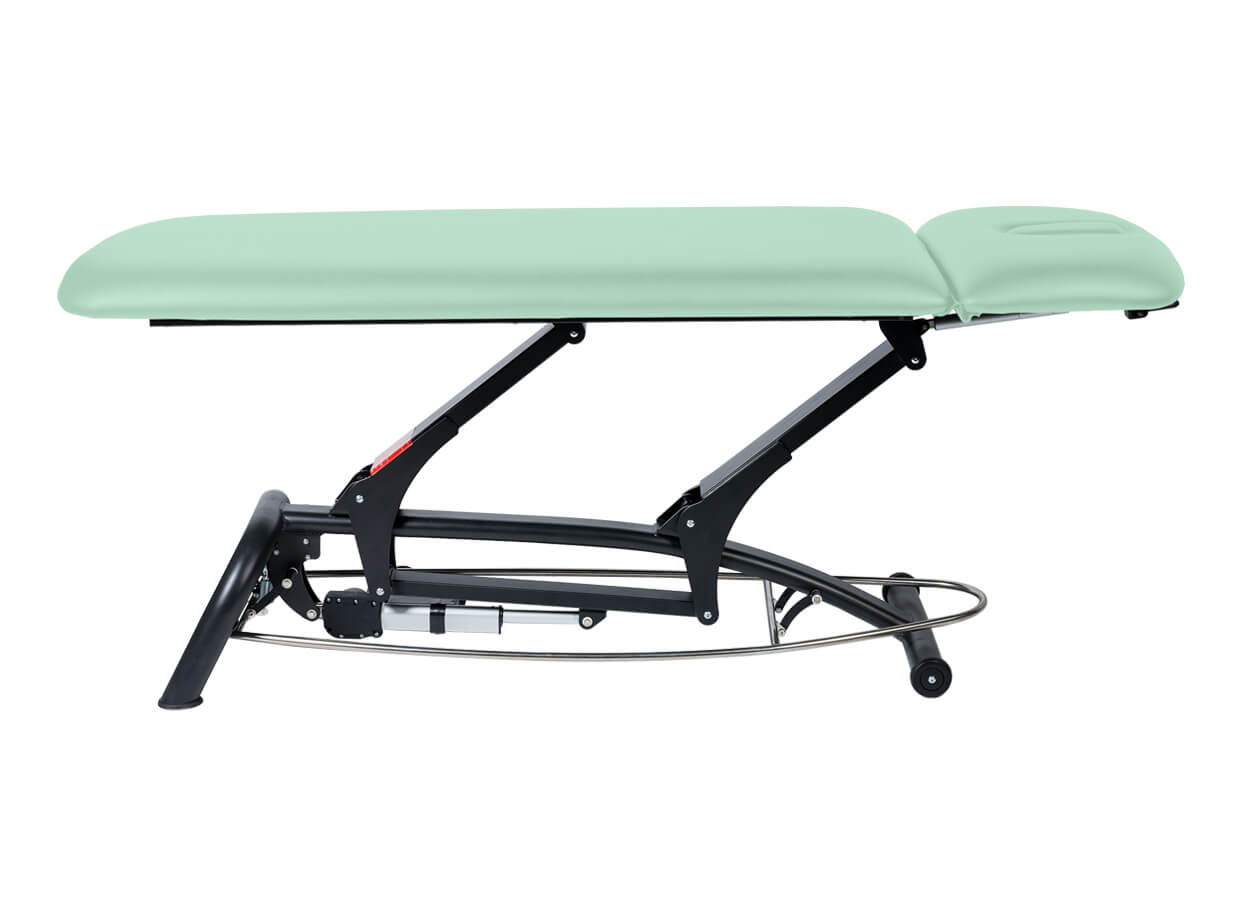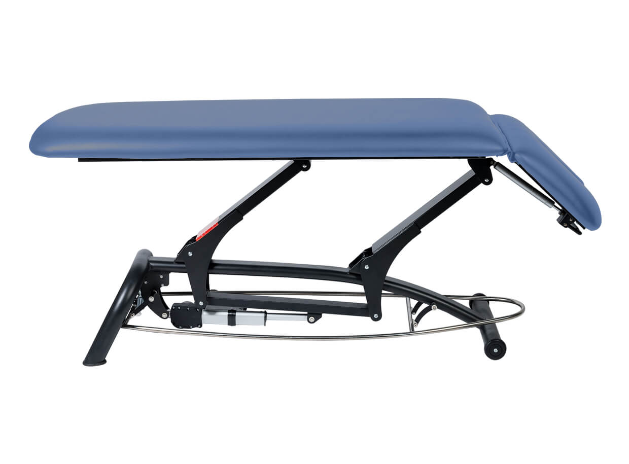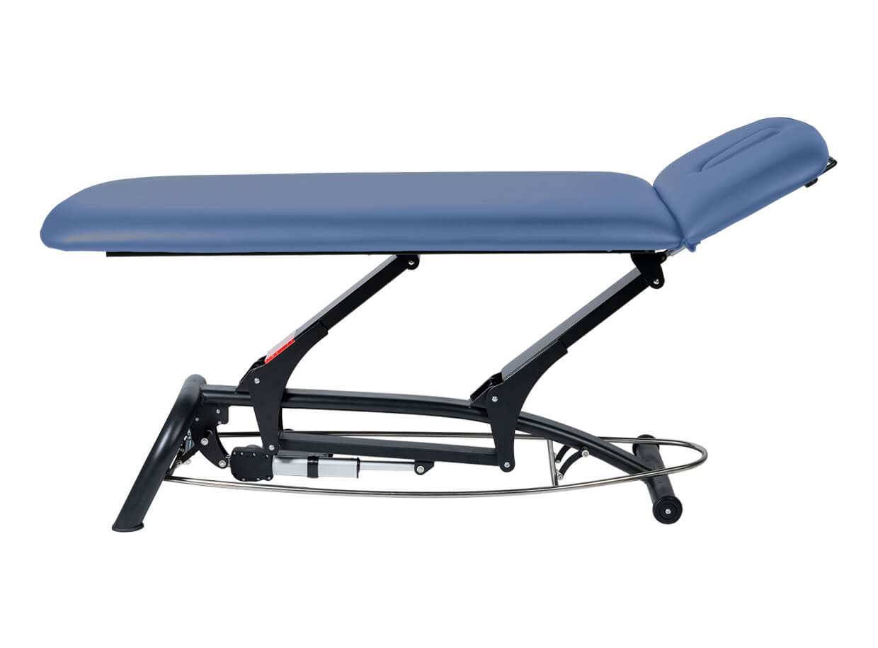 Dvoudílné elektrické lehátko s polohovatelným podhlavníkem vhodné pro masáž, fyzioterapii nebo jako vyšetřovací lehátko.