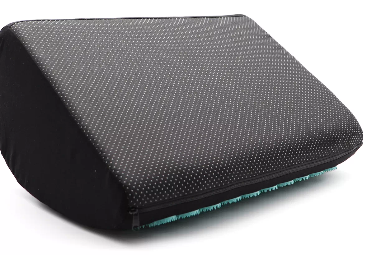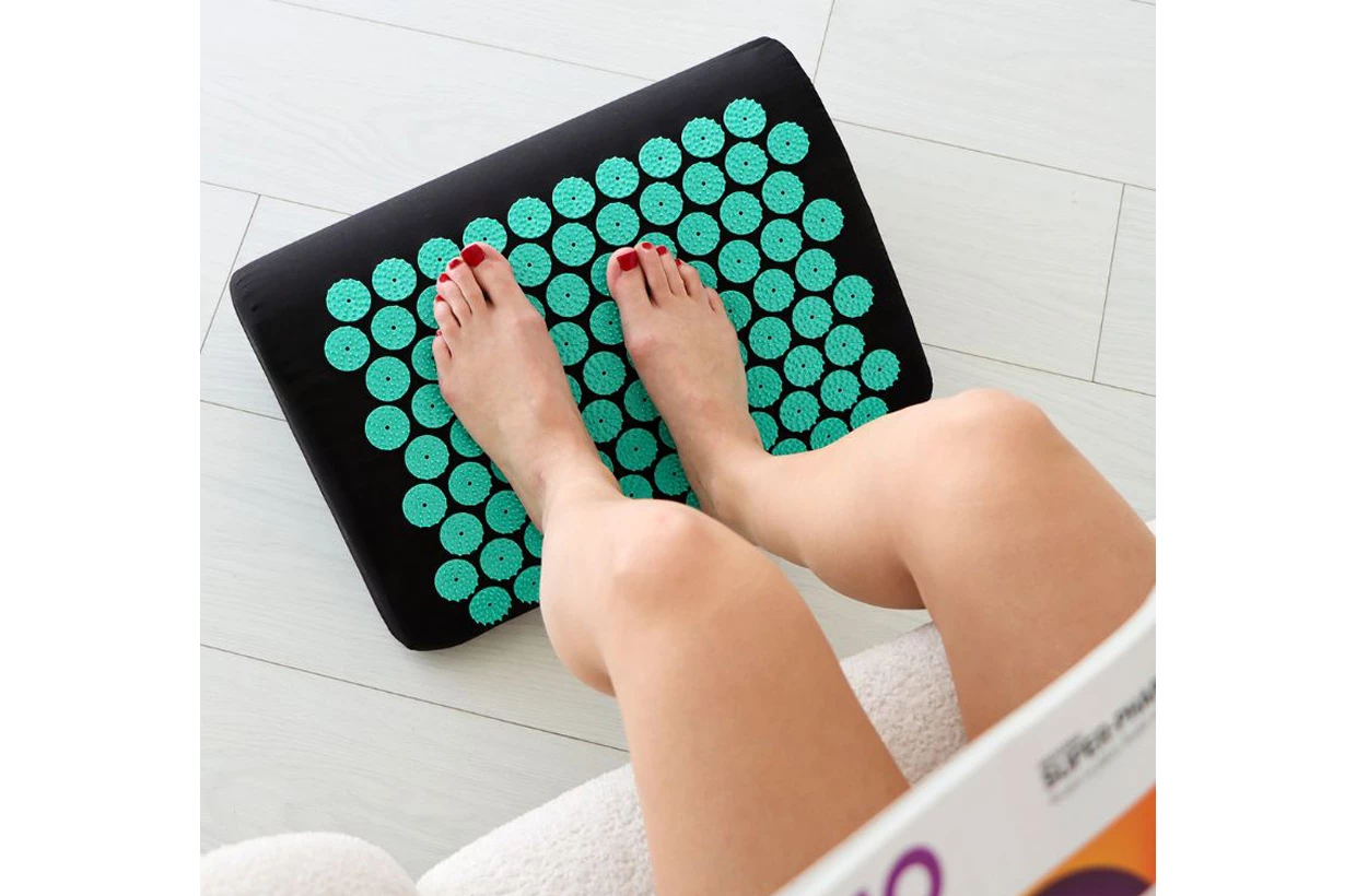 Rozety s hroty jsou rozmístěny po celé podložce, čímž zajišťují rovnoměrný tlak a stimulují velké množství akupresurních bodů. To přispívá ke snížení bolesti, celkovému uvolnění, lepšímu prokrvení a snížení únavy. Pocit pohodlí zajišťují protiskluzové prvky na spodní části, které zabraňují klouzání opěrky po podlaze. Výhodou je i ergonomický tvar opěrky a úhel jejího sklonu.