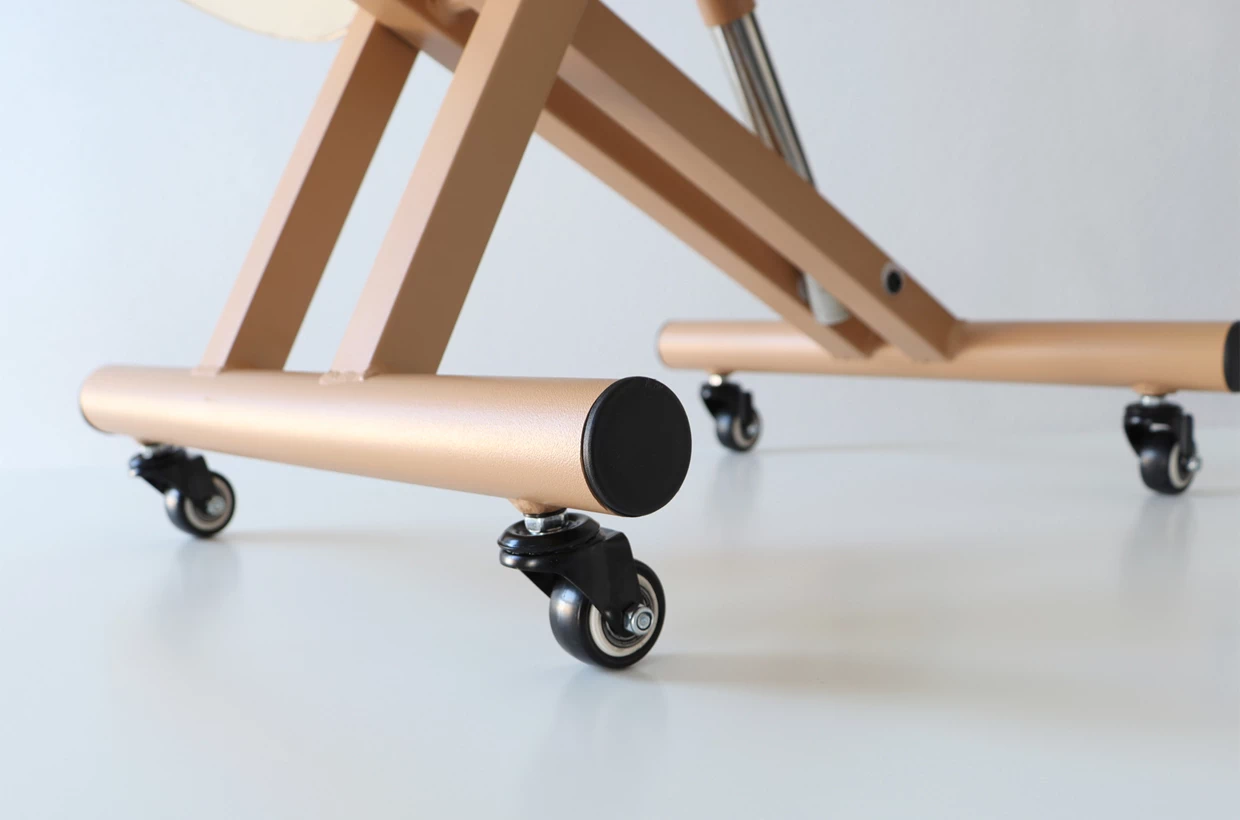 Ergonomická klekačka s pevnou ocelovou konstrukcí a kolečky je výškově nastavitelná (6 stupňů), aby si každý uživatel našel správnou polohu odpovídající jeho výšce a stavbě těla. Vysoké čalounění a jemná soft-touch koženka zaručují pohodlné sezení pro celý pracovní den a bezproblémové čištění. Čtyři kolečka umožňují snadný přesun v rámci pracovních aktivit.