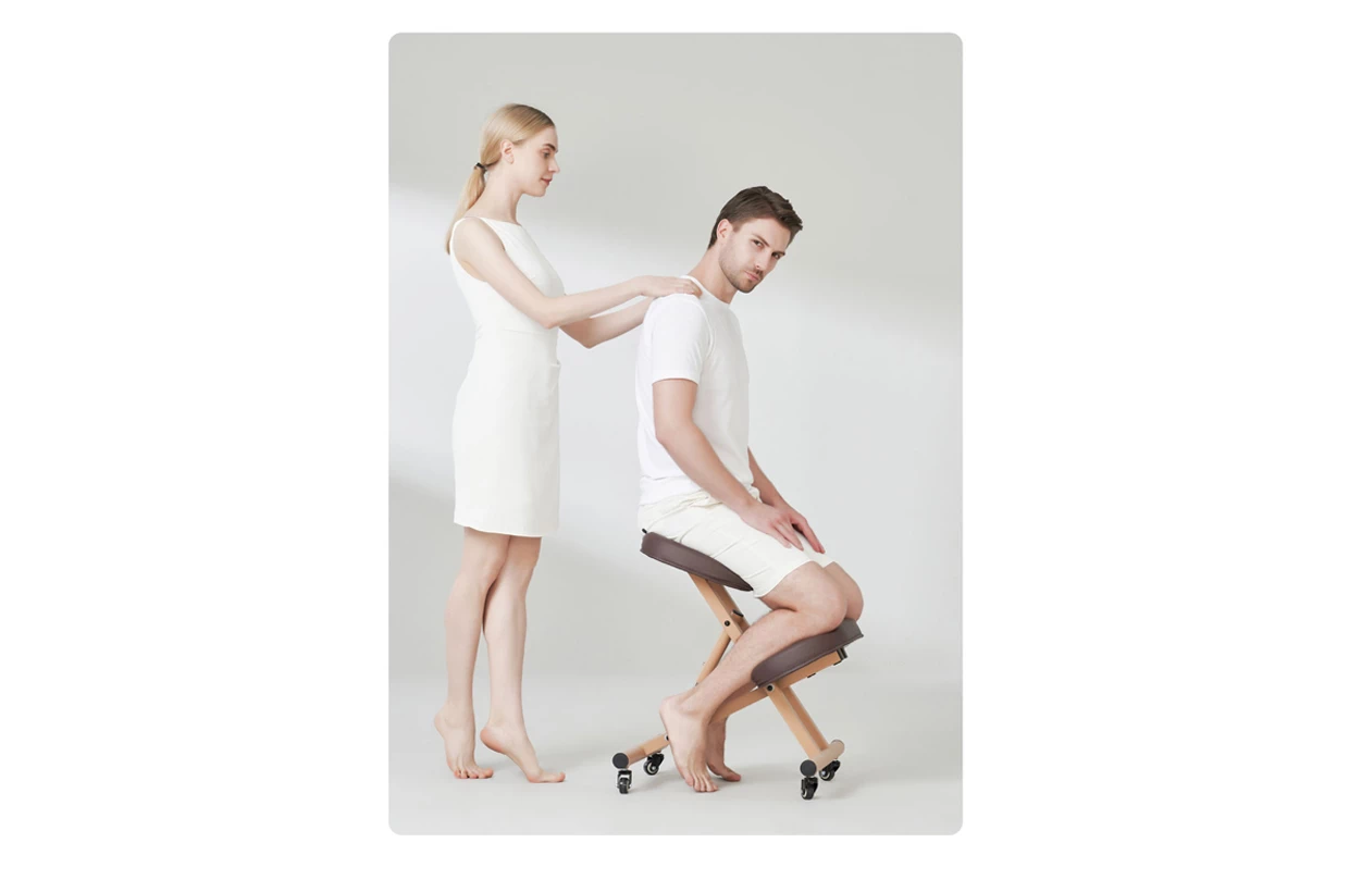 Při správném nastavení kolena tvoří pravý úhel, chodidla se dotýkají podlahy a pánev je uvolněná. I při klekačce však platí, že minimálně jednou za hodinu je třeba vstát, rozhýbat a protáhnout tělo, projít se.