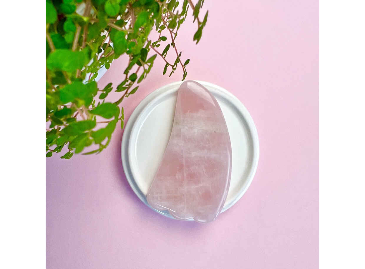 Gua sha destička z růženínu pro masáž obličeje, krku, dekoltu a těla. Destička je speciálně vybroušená do tvaru zubu pro hloubkovou masáž svalstva. Má hladký povrch a zaoblené hrany pro snazší klouzání po pokožce. Během procedury se doporučuje použít masážní olej, krém nebo emulzi.