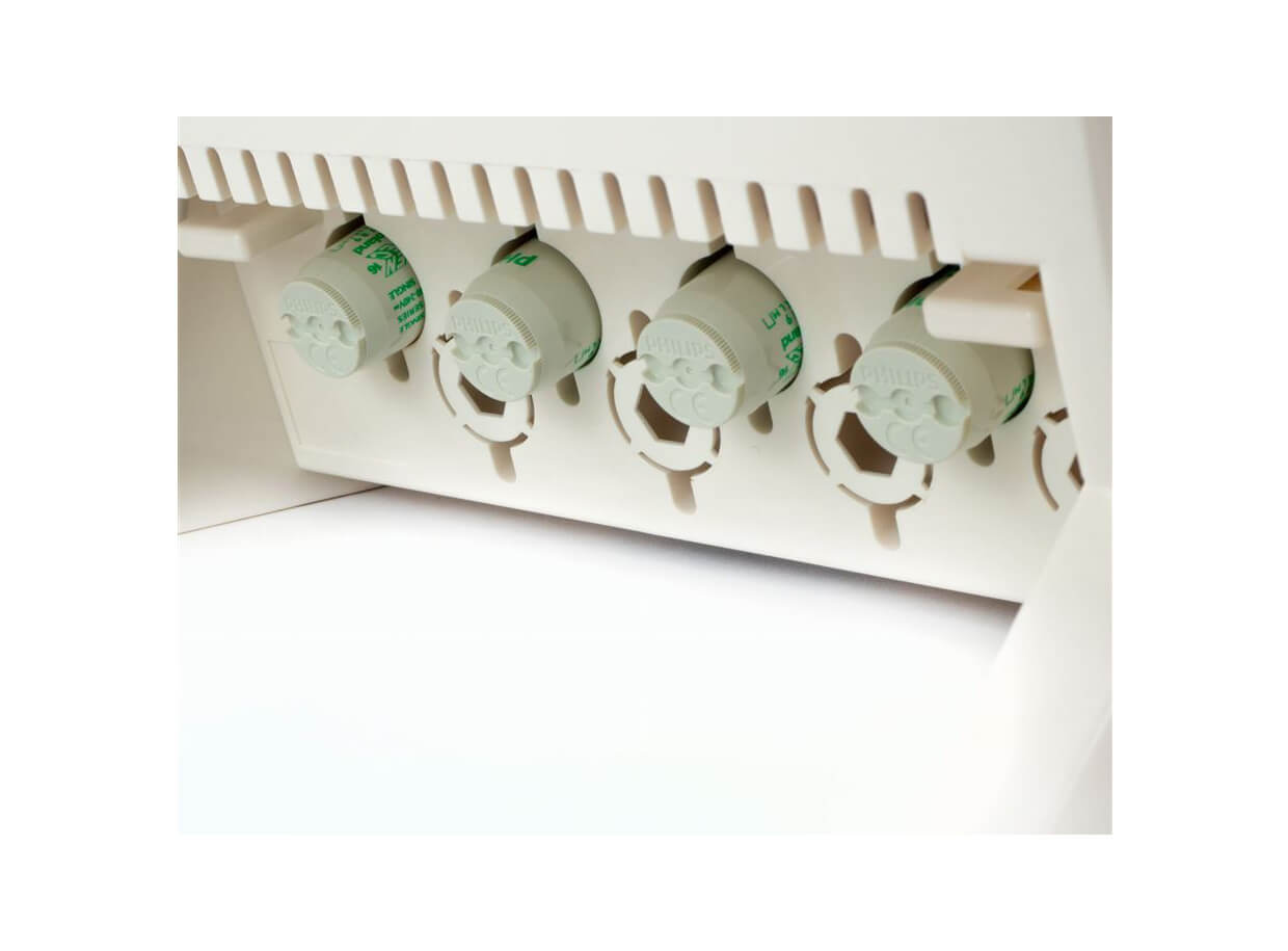 Tuby zářiče jsou panoramaticky vystavěny pro rovnoměrné ozařování obličeje a dekoltu a má zabudovanou reflexní clonu, která usnadňuje proces opalování.