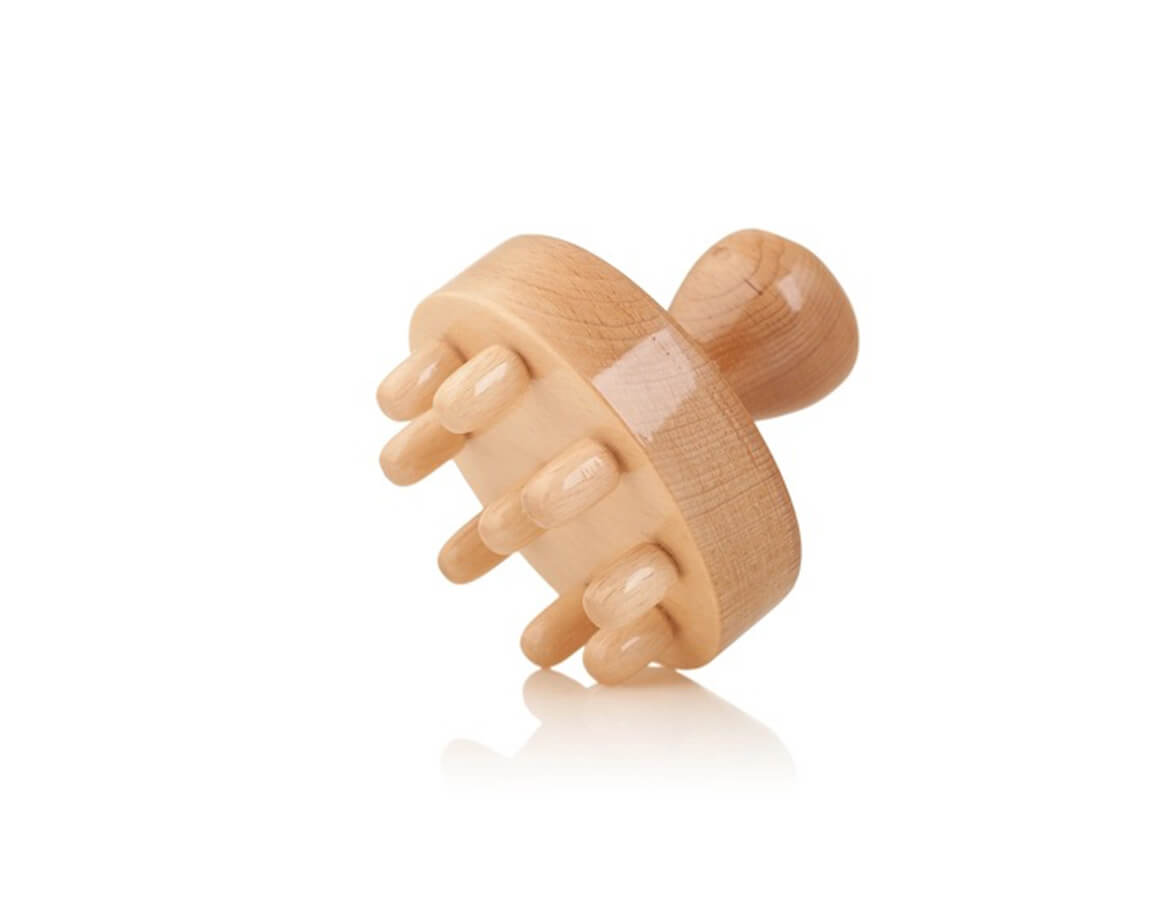 Hříbek z lakovaného bukového dřeva pro hloubkovou anticelulitidní masáž. Na kulaté masážní hlavici je 9 výstupků se zaobleným koncem. Hříbek se používá k hloubkové masáži, roztlačí se jím podkožní tuková tkáň problematických částí těla jako jsou stehna nebo hýždě.