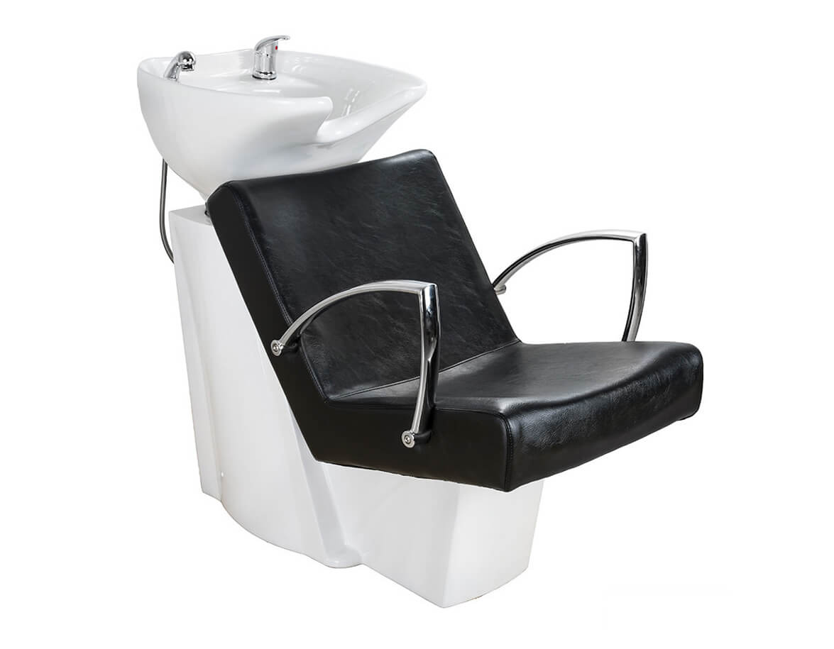 Mycí box s širokým a hlubokým umyvadlem, jehož design zabraňuje rozstřikování vody. Vodovodní baterie a sprchová hlavice jsou součástí balení. Křeslo má široké, velmi pohodlné sedadlo a chromové područky. Je čalouněné voděodolnou umělou kůží, která se snadno čistí.
