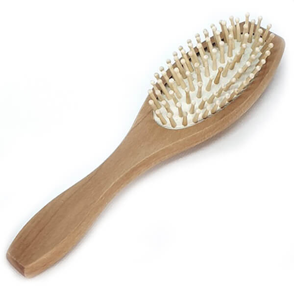 Kartáč na vlasy s dřevěnými bodlinami zakončenými kuličkou. Dokonale promasíruje pokožku hlavy, je šetrný k vlasům díky přírodnímu materiálu vlasy neelektrizují.