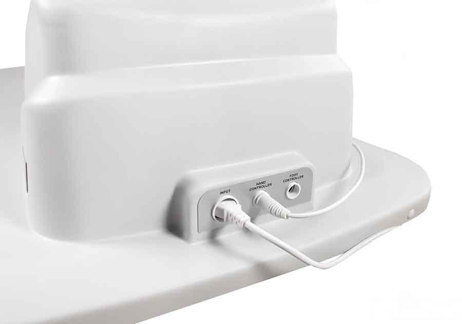 Opěrka nohou je sklopná až do úhlu 80° pomocí pneumatické páčky a její koncový díl se dá ručně vysunout. Opěrku hlavy je možné zcela vysunout (odstranit) a napolohovat ve třech směrech. Součástí opěrky hlavy je výřez na obličej krytý zátkou. Opěrky rukou můžete vyklopit nebo úplně odebrat. Dostanete se tak pohodlně ke klientovi.