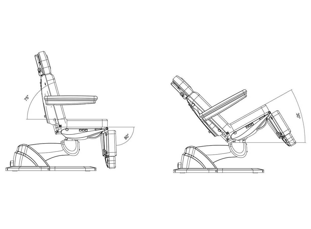 3 výkonné, ale tiché motory ovládají výšku lehátka, sklon opěradla a náklon sedadla (kolébka). Lehátko lze nastavit až do vodorovné polohy. Přepínací tlačítka s nulovou polohou a dvěma směry na ovládání motorů jsou zabudovány na spodních částech zádové opěrky a sedadla.