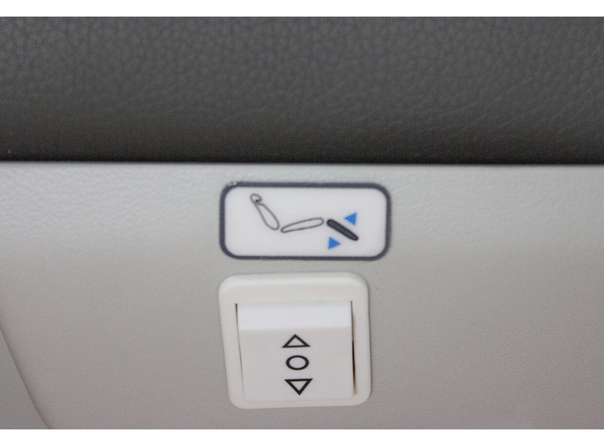Praktické přepínací tlačítka pro ovládání jednotlivých motorů jsou zabudována na bočních částech opěradla a sedací části. Sedací a nožní část je propojena pro co nejpříjemnější posed. Lehátko se ze základních 67 cm dá zvednout až do výšky 88 cm.