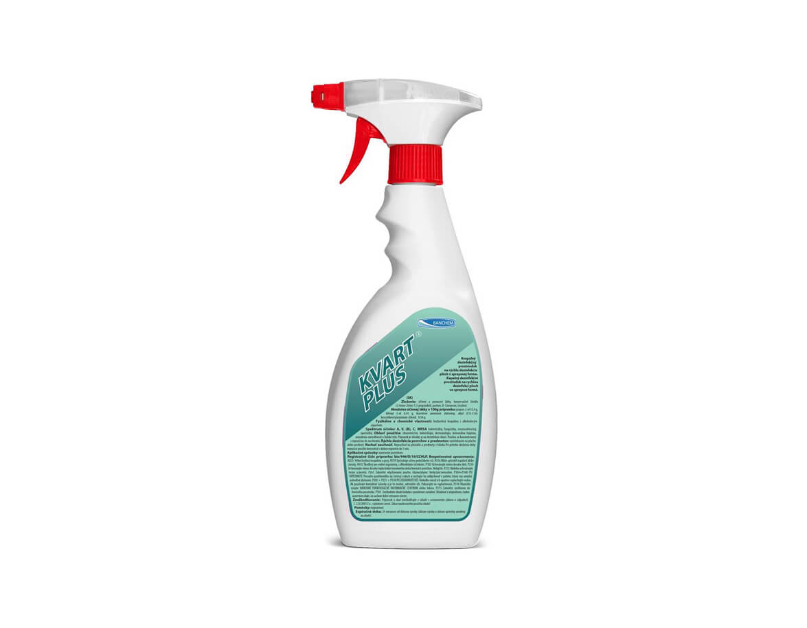 Kvart Plus je tekutý dezinfekční prostředek k čištění ploch a povrchů. Používá se také k dezinfekci přístrojů a předmětů z kovu, gumy a plastu.