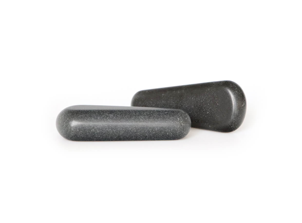 Masážní lávové kameny ve tvaru klínu se zúženým koncem pro masáž spouštěcích bodů. Kameny jsou ručně vyrobeny z přírodního čediče, lávové horniny, která se rychle nahřeje a dlouho udržuje teplo. Jsou hladké a důkladně leštěné, aby se jednoduše klouzaly po pokožce.