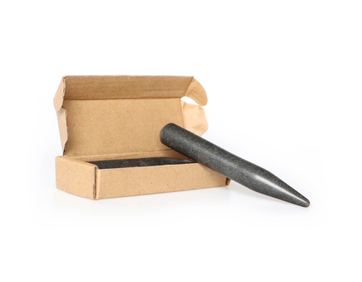 Pár masážních tyčinek pro hloubkovou a reflexní masáž různých částí těla. Paličky jsou vyrobeny z čediče a leštěny podle tradiční metody, bez přidání vosku, barviv nebo chemikálií. Lávová hornina, čedič, má unikátní tepelně akumulační vlastnosti, rychle absorbuje a dlouhodobě udržuje teplo.