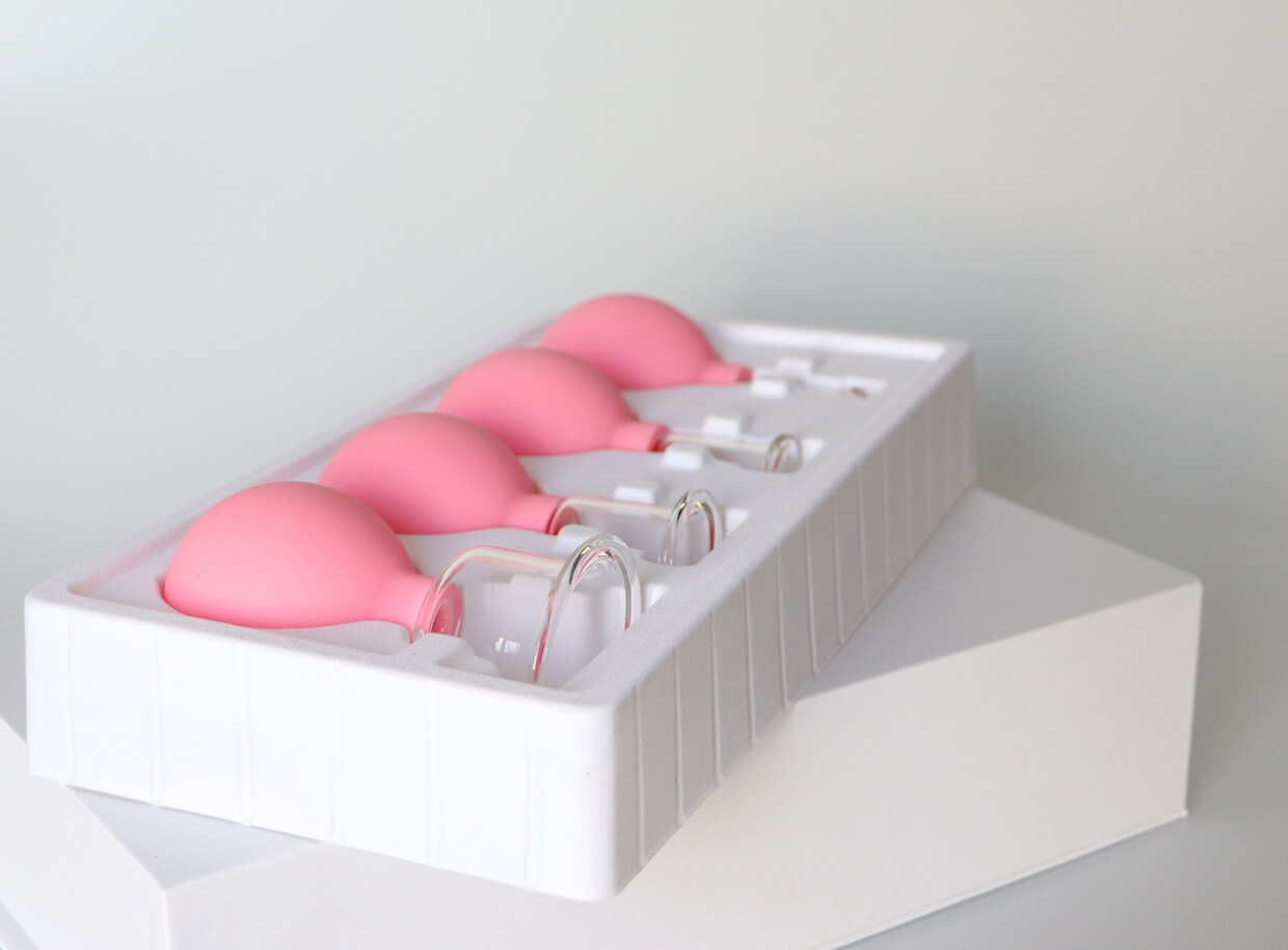 Sada obsahuje čtyři skleněné baňky různých velikostí s gumovými balonky, jsou vhodné na obličej i různé části těla. Banky není třeba před procedurou nahřívat, čímž výrazně usnadňují masérům práci. Stačí zmáčknout balónek a baňku přiložit na pokožku.