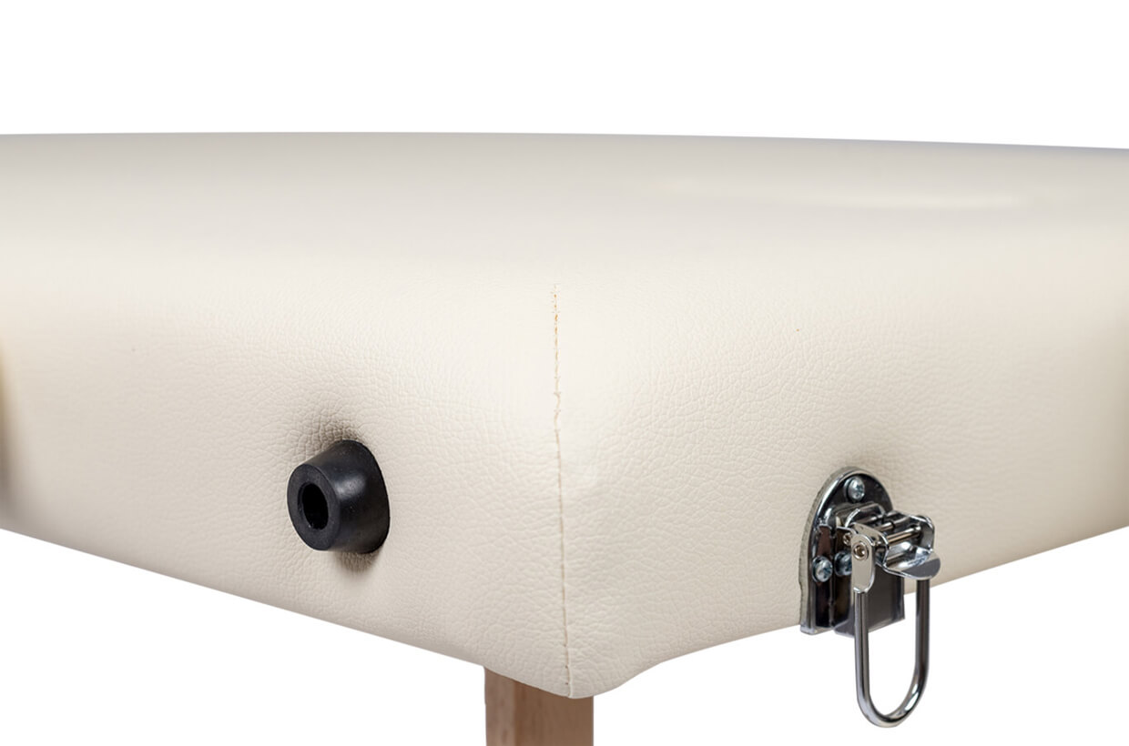 Lehátko je čalouněné kvalitní koženkou s jednoduchými švy v rozích. Koženkový potah se snadno udržuje v čistotě. Molitan s vysokou hustotou o tloušťce 4 cm zajistí při masáži příjemné pohodlí pro klienta. Pro zvýšení bezpečnosti a stability lehátka jsou konce nožiček opatřeny gumovými protiskluzovými podložkami. Masážní stůl Lipt DS-01 nabízíme ve více barevných provedeních.