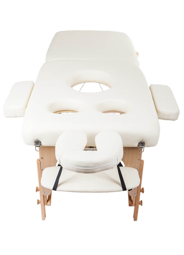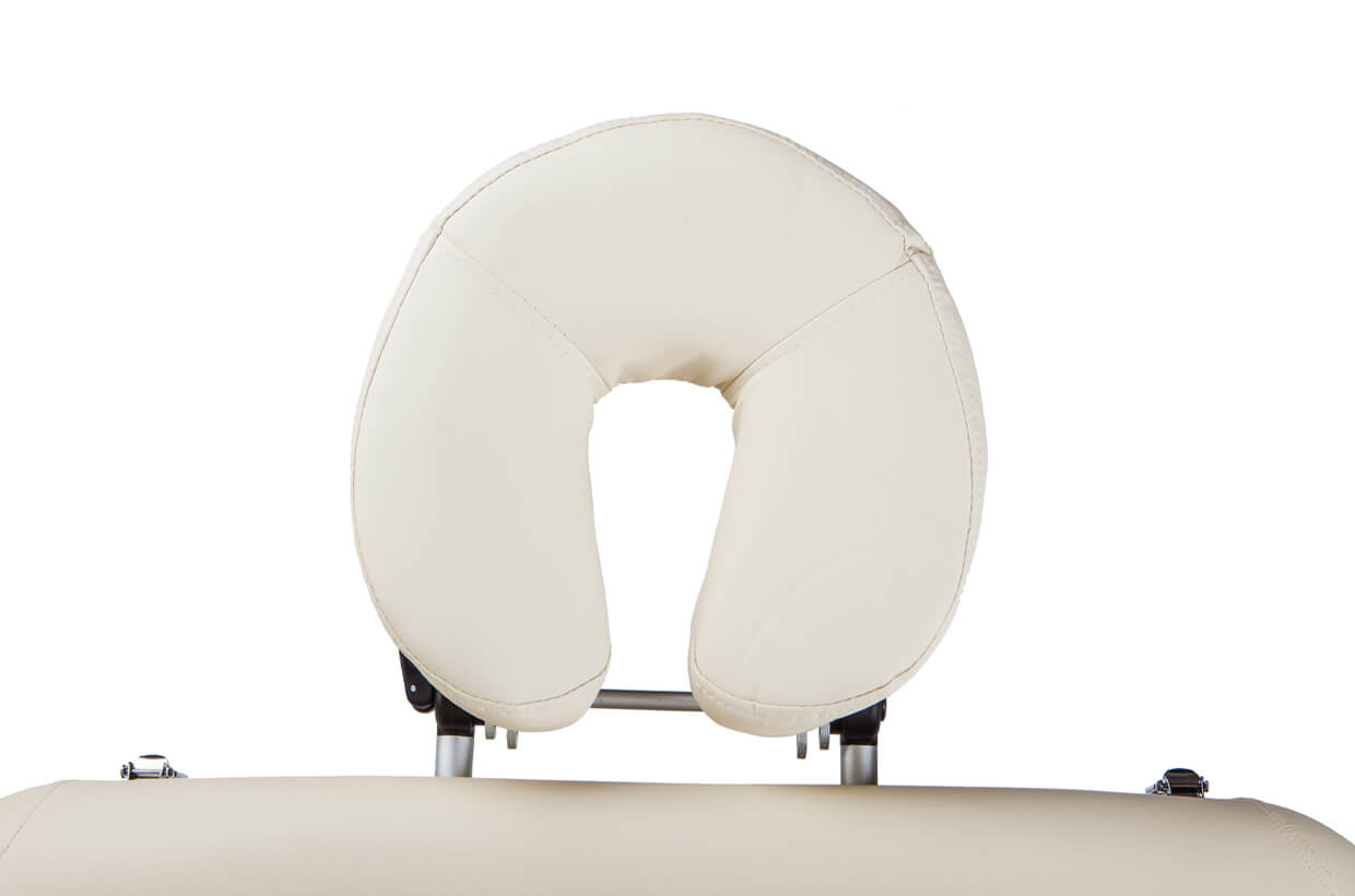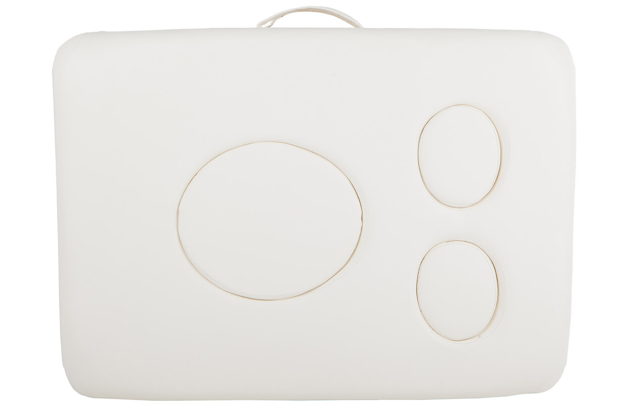 Na rozdíl od běžně na lehátcích praktikovaného otvoru pro obličej s vyjímatelnou zátkou je tento typ lehátka opatřen otvory pro prsa a bříško klientky. To zaručuje v průběhu masáže mnohem větší komfort, protože u těhotných žen bývají prsa zvětšená a hlavně hodně citlivá. Stejně tak na bříško je třeba dbát s maximální opatrnosti. I tyto otvory lze uzavřít zátkami, pokud bude lehátko používáno jiným klientem. Luxusně polstrována je i opěrka hlavy.