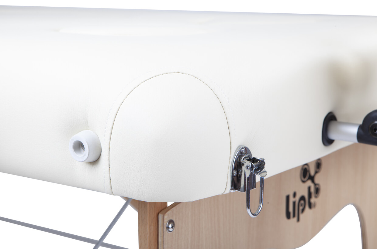 Řešení tohoto masážního lehátka samozřejmě umožňuje také nastavení požadované výšky. Lze volit v rozmezí osmi poloh od výšky 65,5 do 88 centimetrů, polohy jsou odstupňovány po 3,2 centimetrech. K tomu slouží velké dřevěné matky, s nimiž je snadná práce a není zapotřebí žádného náčiní, snadno s nimi lze manipulovat pouhou rukou. Nohy lehátka jsou opatřeny protiskluzovými podložkami pro maximální stabilitu. Jedná se o výbornou pomůcku, kterou mohou využít kromě masérů i rehabilitační pracovníci, fyzioterapeuté a další. Samozřejmostí tohoto kvalitního výrobku je i dvouletá záruka.