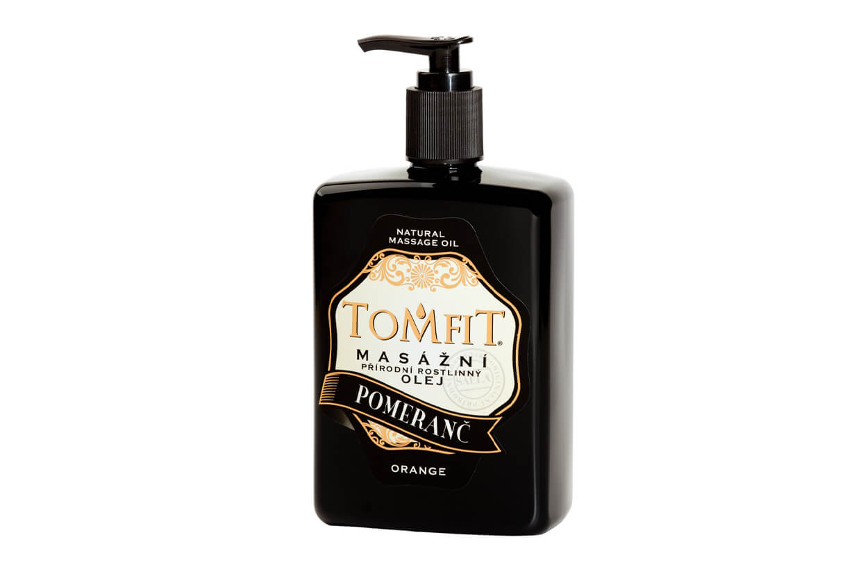 TOMFIT přírodní rostlinný olej s pomerančovou silicí je určen pro rehabilitační a relaxační masáž.