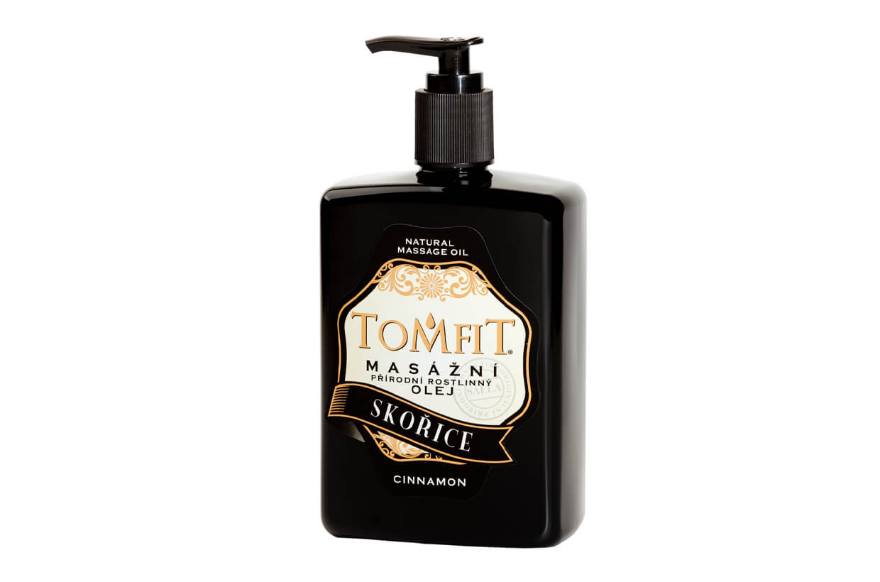 TOMFIT přírodní rostlinný olej se skořicovou silicí je určen pro masáže celého těla s výjimkou obličeje.
