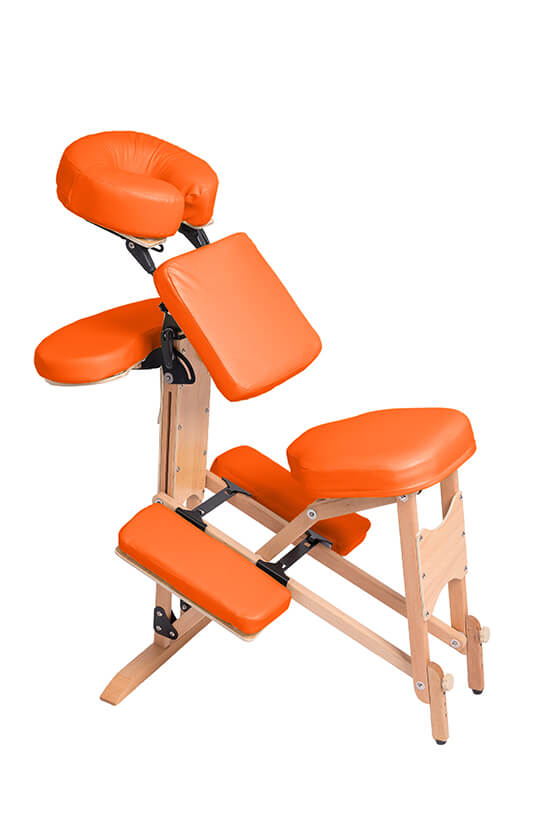 Profesionální dřevěná skládací masážní židle určená pro maséry, fyzioterapeuty nebo rehabilitační pracovníky. Židle je vyrobena z tvrdého bukového dřeva. Čalounění je z velmi kvalitní a na dotek příjemně hebké koženky - tzv. soft touch. Čalouněné části židle jsou vyplněny 4cm hrubým molitanem s vysokou hustotou. Nožičky mají gumovou podložku, díky které se židle neklouže po podlaze.