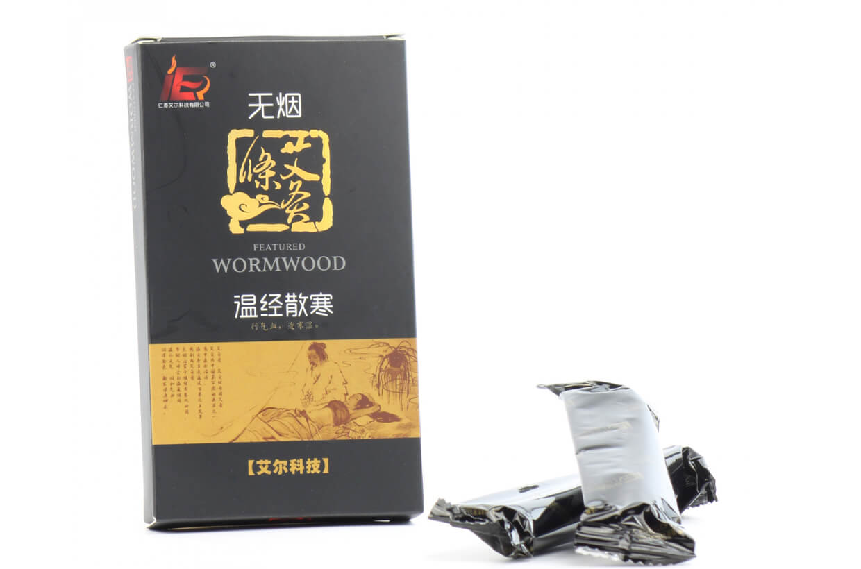 Uhlíkové moxy bez kouře a zápachu. Tato uhlíková moxa relativně pomalu hoří a její kouř je minimální ve srovnání s tradiční moxou.