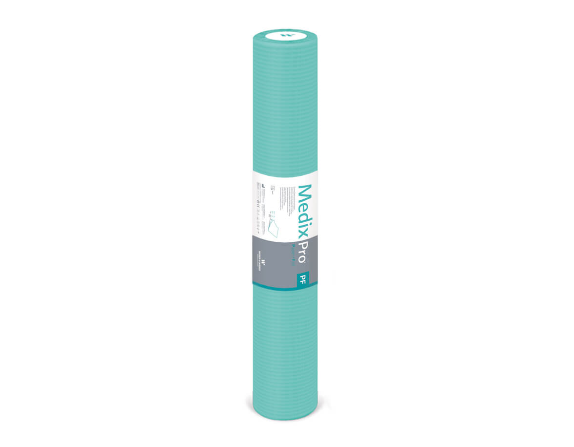 Jednorázové třívrstvé prostěradlo z fólie a buničiny s gramáží 54 g/m2 v rolce. Hebký materiál dvou vrchních papírových vrstev zajišťuje komfort, zatímco spodní polyetylénová vrstva nepromokavost.