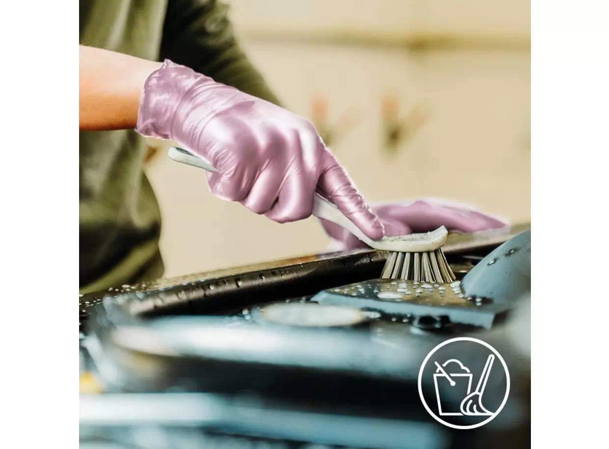 Pevné a odolné jednorázové rukavice mají zdrsněné konečky prstů pro lepší úchop. Jsou pružné a pohodlné při nošení, protože se přizpůsobí tvaru ruky. Vnitřní povrchová úprava zajišťuje snadné navlékání.