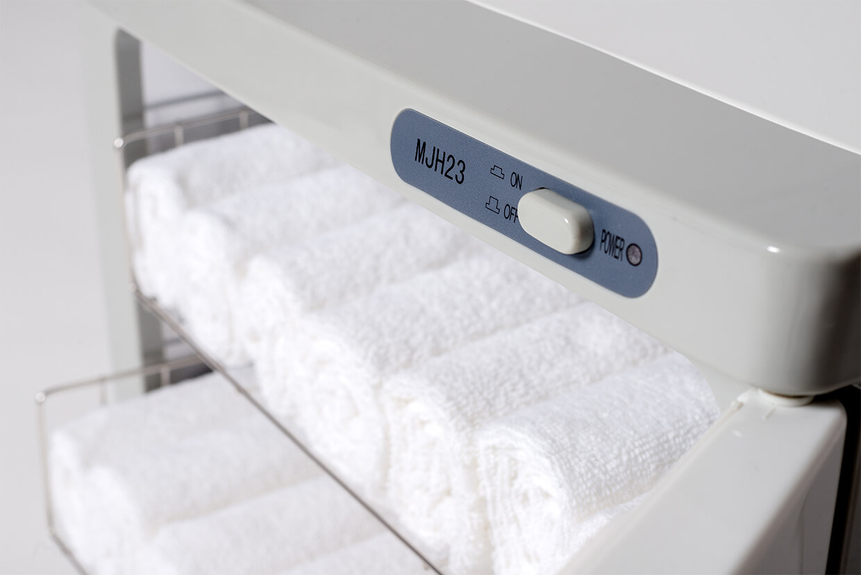 Ohřívač ručníků patří k běžné výbavě masérských nebo kosmetických salonů, wellness center a hotelů.