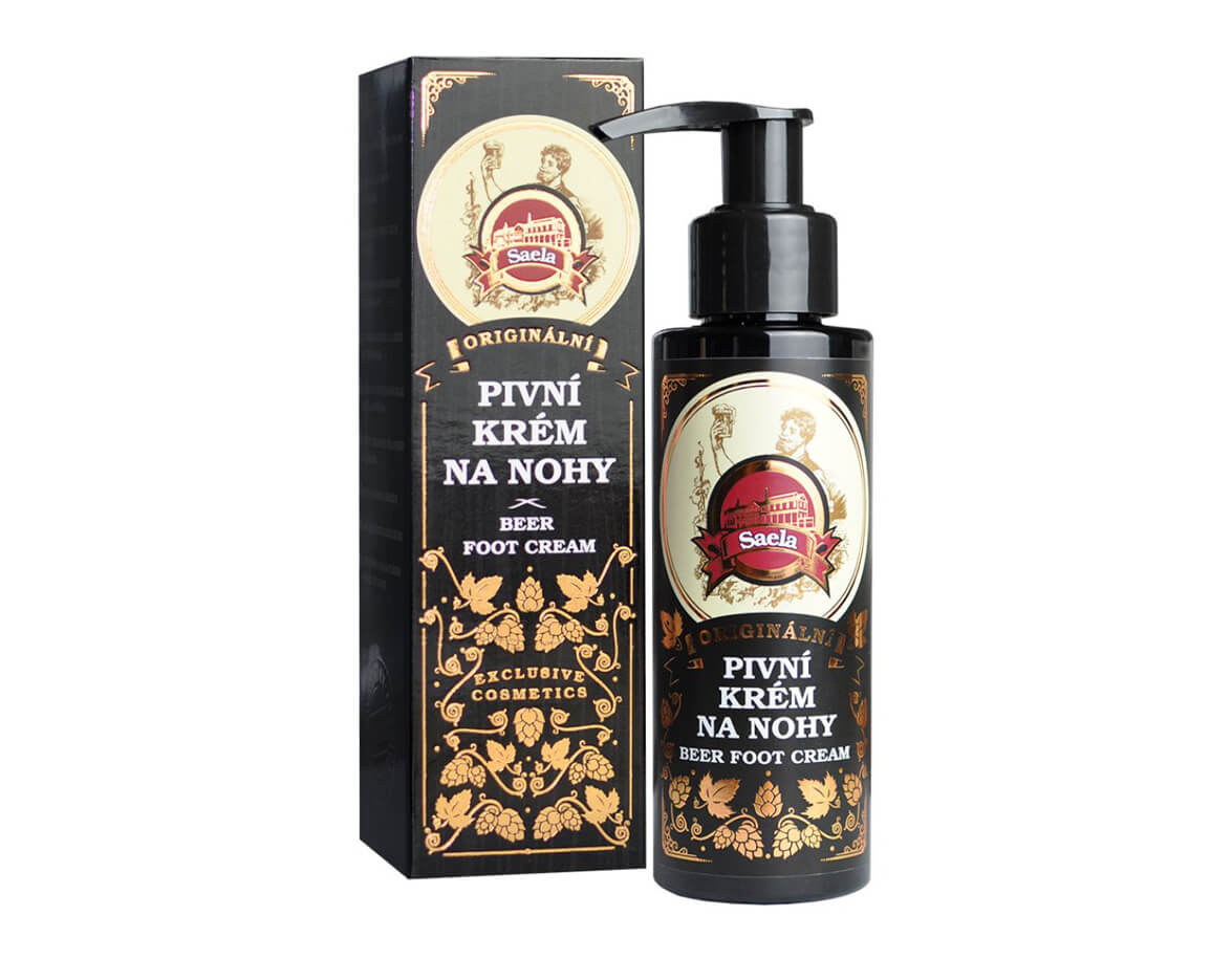 Originální pivní krém na nohy s pivními kvasnicemi a výtažkem z chmele v praktickém balení s dávkovačem.