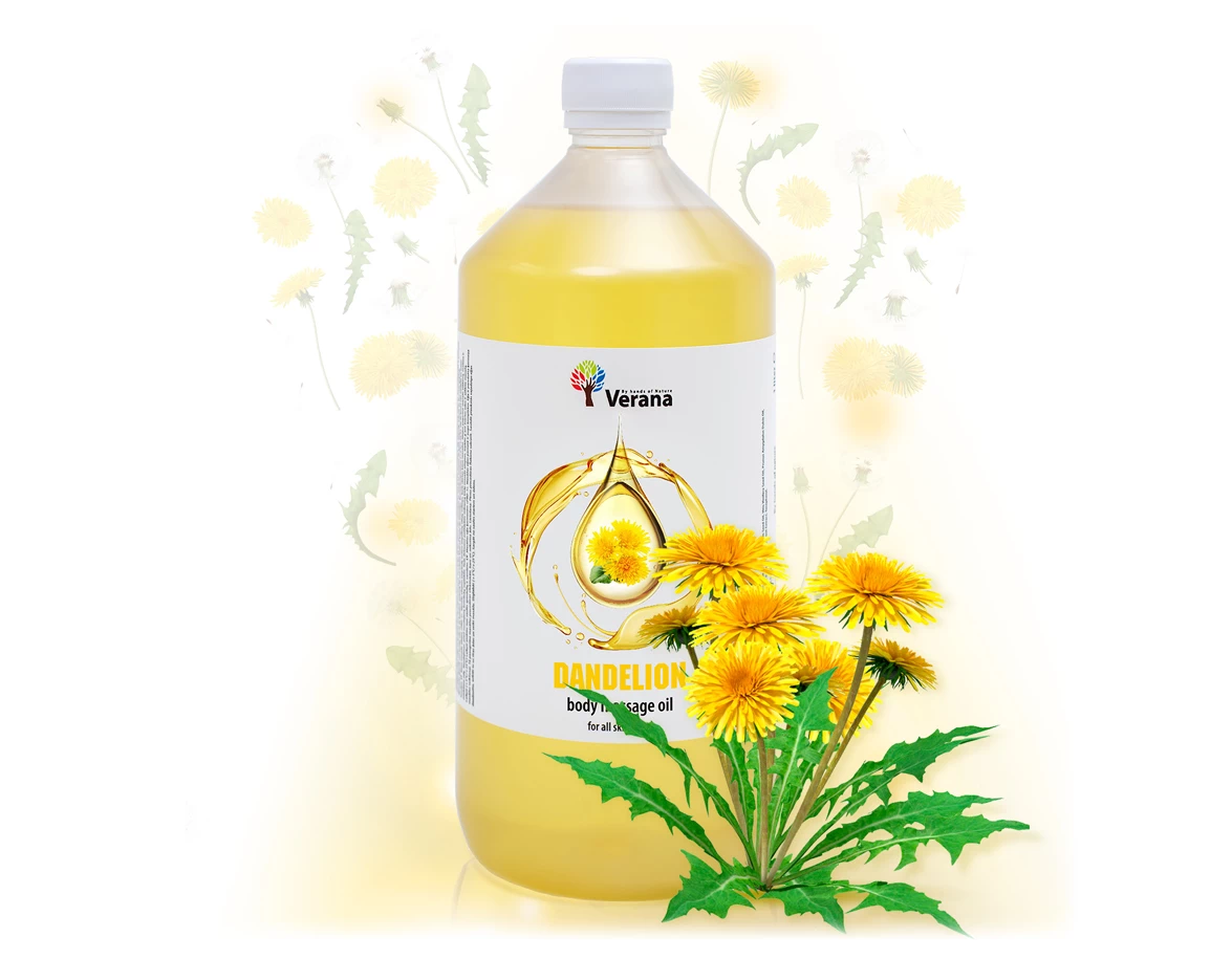 Pampeliškový masážní olej v kombinaci s dalšími cennými přírodními oleji obsahuje mnoho minerálů a vitamínů, které pokožku vyživí, hydratují a zlepší její vzhled. Potlačuje projevy stárnutí, jako je například pigmentace pokožky nebo nerovnoměrný tón pleti.