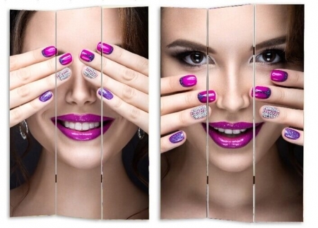 3-dílný paraván Manikúra s fotopotiskem z obou stran.