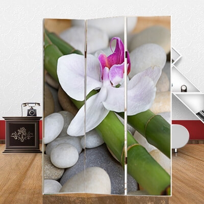 3-dílný paraván Bílá orchidej s fotopotiskem z obou stran.