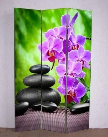 3-dílný paraván Kameny a orchidej s fotopotiskem z obou stran.